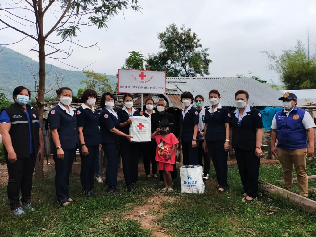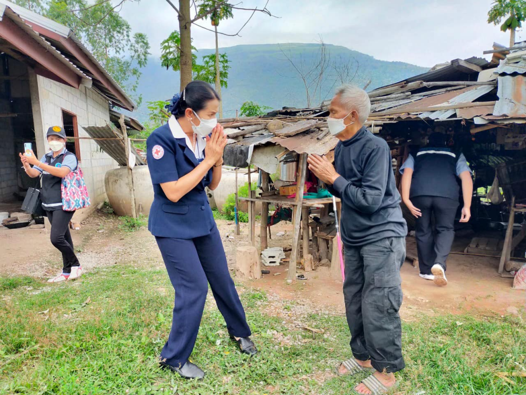 ในการนี้ เหล่ากาชาดจังหวัดเลย มอบถุงเครื่องอุปโภคบริโภค จำนวน 6 ชุด และเสื้อกันหนาว จำนวน 6 ตัว ให้กับแก่กลุ่มเปราะบางทั้ง 6 รายดังกล่าว