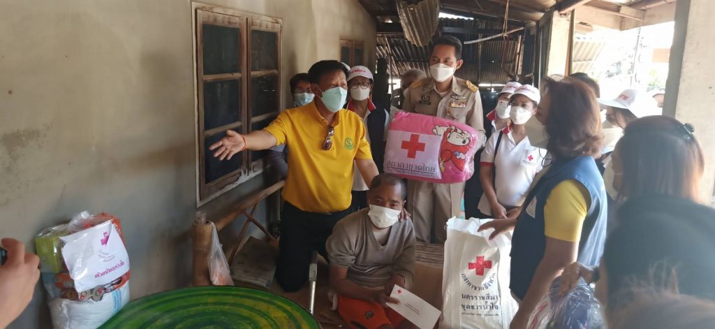วันที่ 10 มกราคม 2565 นางณัฏฐินีภรณ์ จันทรโณทัย นายกเหล่ากาชาดจังหวัดนครราชสีมา พร้อมด้วยคณะกรรมการเหล่ากาชาดจังหวัดนครราชสีมา เร่งออกเยี่ยมให้กำลังใจมอบเงินช่วยเหลือเบื้องต้นและมอบเครื่องอุปโภคบริโภคให้กับนายสุนทร เทาขุนทด ผู้พิการ โดยมีนายไพฑูรย์ มหาชื่นใจ นายอำเภอด่านขุนทด พร้อมด้วยนางพัชรณัญญ์ มหาชื่นใจ นายกิ่งกาชาดอำเภอด่านขุนทด คณะกรรมการกิ่งกาชาดอำเภอด่านขุนทด สาธารณสุขอำเภอ รพ.สต. อบต. กำนัน ผู้ใหญ่บ้านและอสม.ให้การต้อนรับและร่วมมอบเครื่องอุปโภค บริโภค ณ บ้านเลขที่ 32