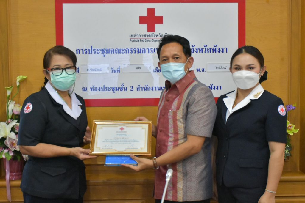 วันที่ 12 มกราคม 2565 สำนักงานเหล่ากาชาดจังหวัดพังงา ได้จัดประชุมคณะกรรมการเหล่ากาชาดจังหวัดพังงา ครั้งที่ 1/2565 โดยมีนายจำเริญ ทิพญพงศ์ธาดา ผู้ว่าราชการจังหวัดพังงา ในฐานะประธานที่ปรึกษาคณะกรรมการเหล่ากาชาดจังหวัดพังงา พร้อมด้วย นางวิภาดา ทิพญพงศ์ธาดา นายกเหล่ากาชาดจังหวัดพังงา และคณะกรรมการเหล่ากาชาดฯ ร่วมประชุม ณ ห้องประชุมสำนักงานเหล่ากาชาดจังหวัดพังงา เพื่อรับทราบสรุปผลการปฏิบัติงานประตำปีงบประมาณ 2564 เช่น การรับสมัครสมาชิกใหม่โดยมีผู้รับสมัครจำนวน 21 ราย, การรับบริจาคโลหิต รวมจำนวน 920,800 ซีซี, การรับบริจาคดวงตาพบว่ามีผู้มีจิตกุศลบริจาค จำนวน 52 ราย ส่วนอวัยวะมีผู้มีจิตกุศลบริจาคจำนวน 49 ราย, รวมทั้งรับทราบแผนออกรับบริจาคโลหิตเดือนมกราคมถึงเดือนกุมภาพันธ์ 2565 และรายได้ ค่าใช้จ่าย ประจำเดือนธันวาคม 2564