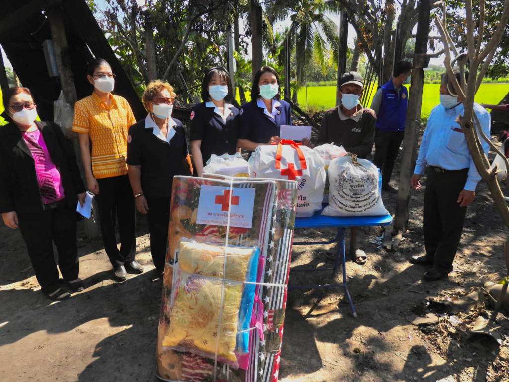เหล่ากาชาดจังหวัดชัยนาท คณะกรรมการและสมาชิกเหล่ากาชาด ลงพื้นที่เยี่ยมและให้กำลังใจ พร้อมมอบถุงยังชีพ ชุดเครื่องนอน เงินสด จำนวน 8,000 บาท ให้แก่ นายพลี พลอยเพ็ชร์ บ้านเลขที่ 101 หมู่ที่ 1 ตำบลวัดโคก อำเภอมโนรมย์ จังหวัดชัยนาท ผู้ประสบอัคคีภัย