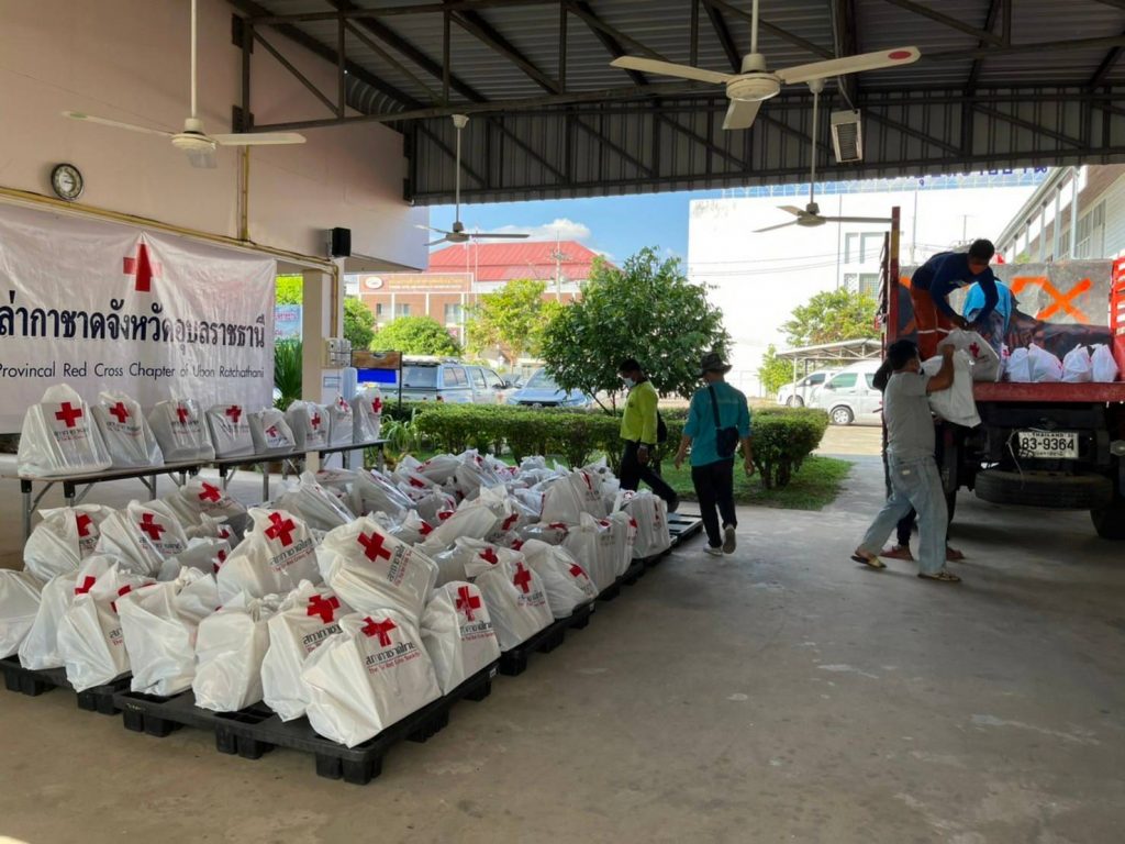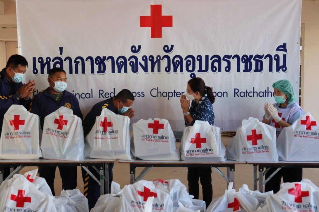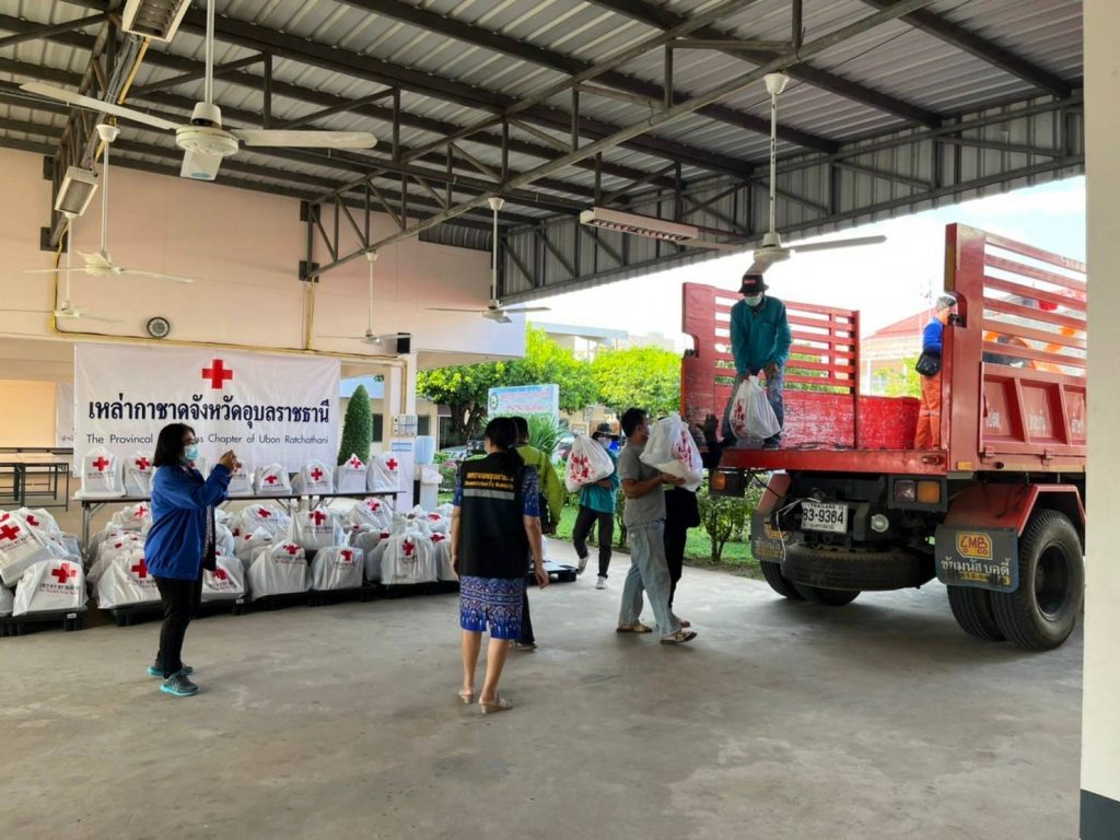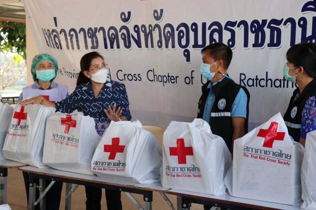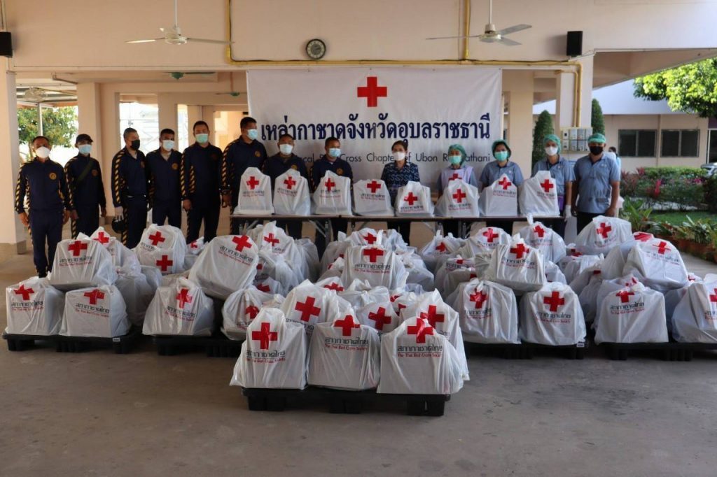 วันที่ 14 มกราคม 2565 นางศลิษา ภิรมย์รัตน์ นายกเหล่ากาชาดจังหวัดอุบลราชธานี พร้อมด้วยนางธัญธรณ์ วิทยาขาว หัวหน้าสถานีกาชาดที่ 7 จ.อุบลราชธานี และคณะเจ้าหน้าที่สถานีกาชาดที่ 7 จ.อุบลราชธานี เจ้าหน้าที่เหล่ากาชาดจังหวัดอุบลราชธานี สมาชิกกองอาสารักษาดินแดน (อส.) จังหวัดอุบลราชธานี ร่วมบรรจุและมอบชุดธารน้ำใจกู้ชีวิตฝ่าวิกฤตโควิด-19 จำนวน 120 ชุด ให้กับเจ้าหน้าที่สำนักงานเทศบาลนครอุบลราชธานี จังหวัดอุบลราชธานี เพื่อนำไปมอบให้กับผู้กักกันตน 14 วัน ในพื้นที่เขตเทศบาลนครอุบลราชธานี จังหวัดอุบลราชธานี ซึ่งได้รับผลกระทบจากการแพร่ระบาดของโรคโควิด-19 และเป็นผู้ที่มีความเสี่ยงสูง ทั้ง 120 คน ในลำดับต่อไป โดยอาสาสมัครสาธารณสุขประจำหมู่บ้าน (อสม.) คีย์ข้อมูลคำร้อง ขอความช่วยเหลือผ่านระบบ Application “พ้นภัย”