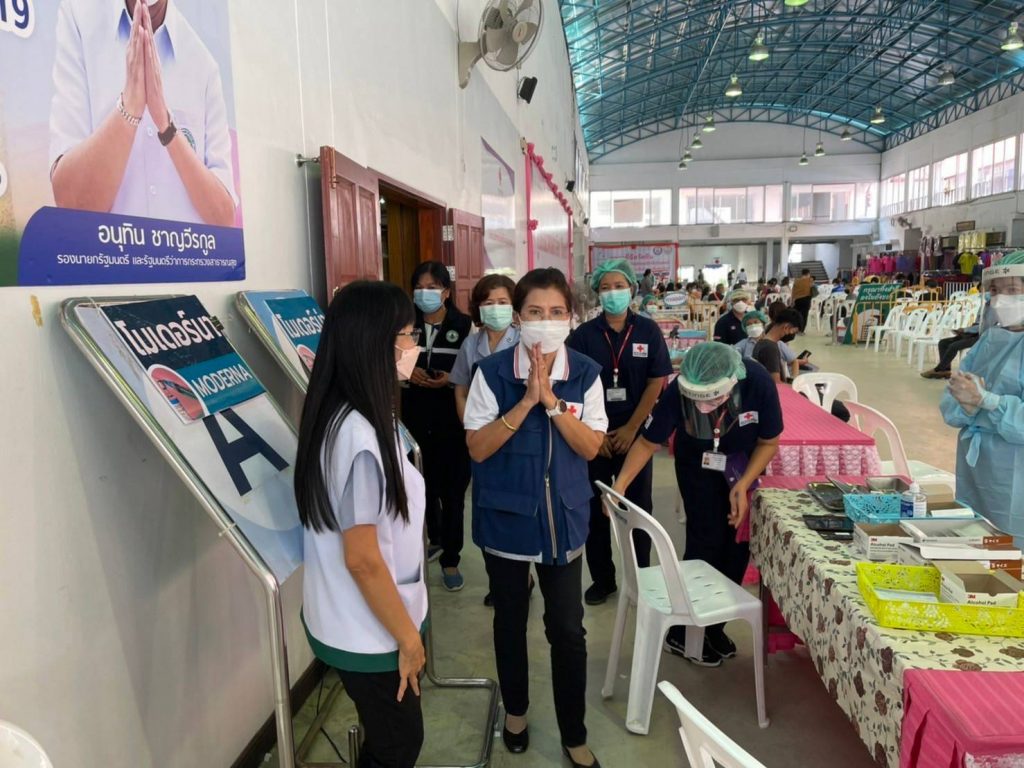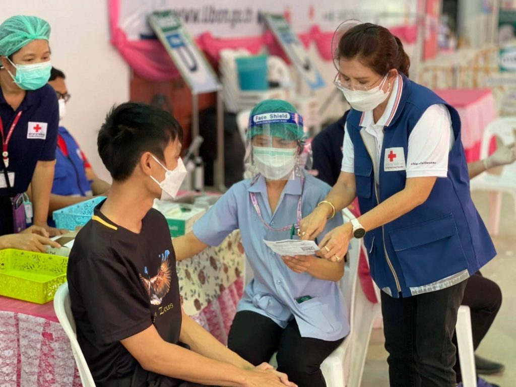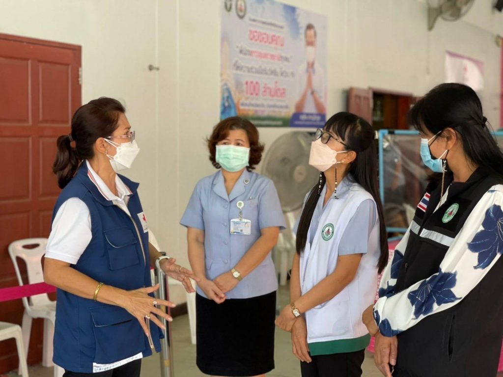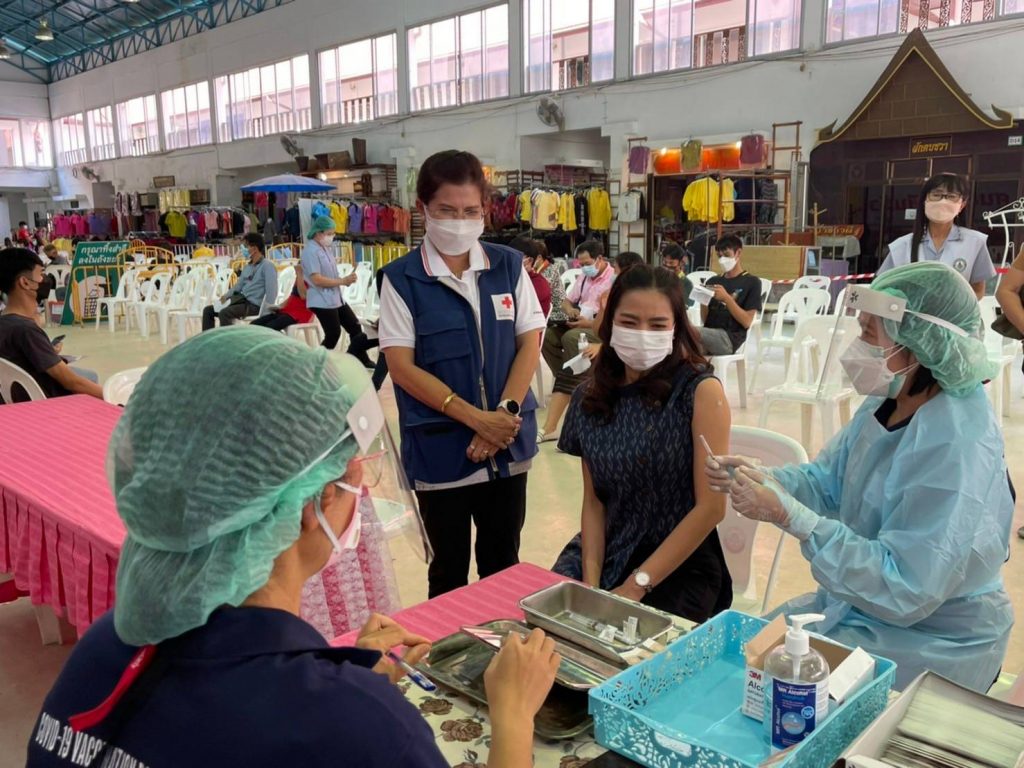วันที่ 13 มกราคม 2565 นางศลิษา ภิรมย์รัตน์ นายกเหล่ากาชาดจังหวัดอุบลราชธานี พร้อมด้วยเจ้าหน้าที่เหล่ากาชาดจังหวัดอุบลราชธานี ลงพื้นที่เยี่ยมและให้กำลังใจ จุดฉีดวัคซีน Moderna ที่ได้รับการสนับสนุนจากสภากาชาดไทย และ Pfizer ป้องกันโรคติดเชื้อไวรัสโคโรนา 2019 (COVID – 19) โดยฉีดให้กับประชาชนที่ Walk in เข้ารับบริการตั้งแต่ 08.30-15.00 น. ณ ศูนย์โอท็อปเซ็นเตอร์ จังหวัดอุบลราชธานี และนายกเหล่ากาชาดจังหวัดอุบลราชธานี อำนวยความสะดวก จัดระเบียบการเข้าใช้บริการ พร้อมให้คำแนะนำในจุดบริการต่าง ๆ