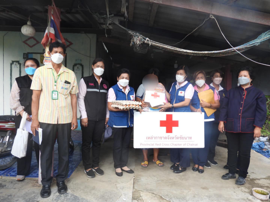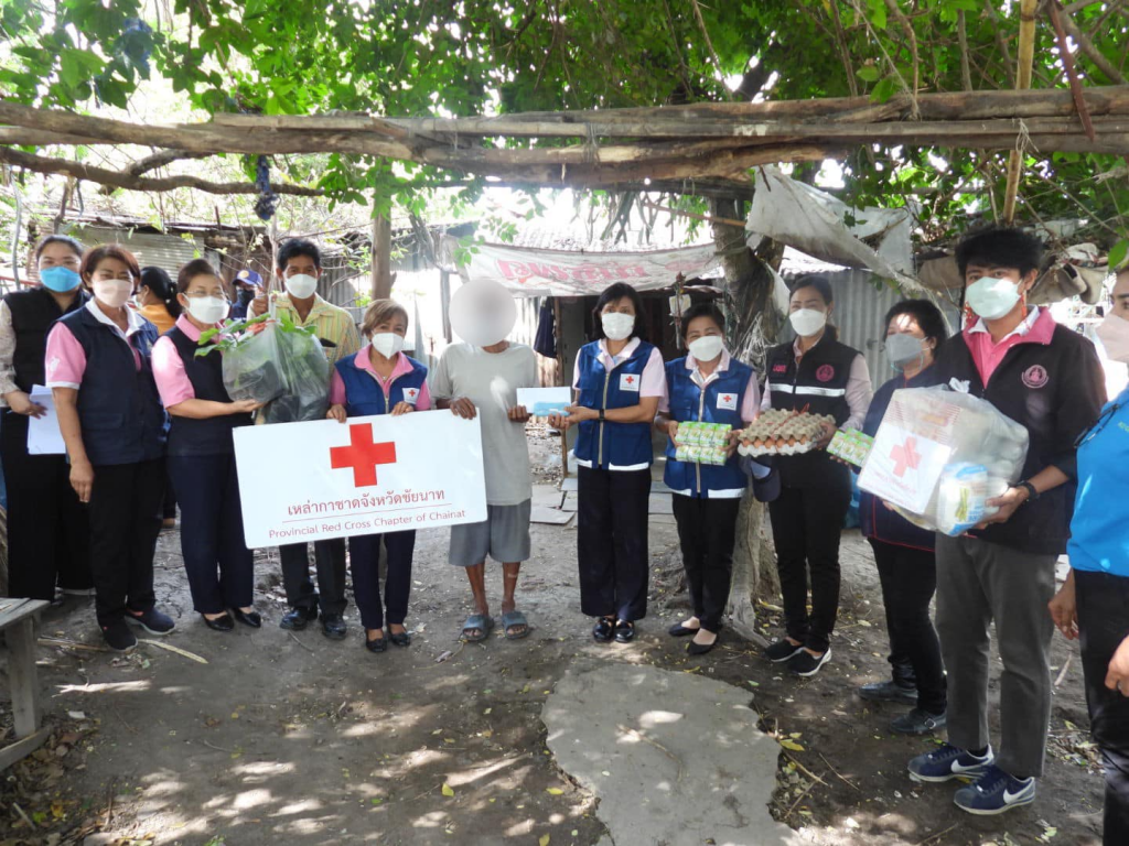 วันที่ 22 มีนาคม 2565 นาวาเอกหญิงอินทิรา ตันเจริญ นายกเหล่ากาชาดจังหวัดชัยนาท พร้อมด้วยนางนัฐฐา ภูมิฐานนท์ ที่ปรึกษาเหล่ากาชาดจังหวัดชัยนาท คณะกรรมการเหล่ากาชาดจังหวัดชัยนาท สำนักงานพัฒนาสังคมและความมั่นคงของมนุษย์จังหวัดชัยนาท บ้านพักเด็กและครอบครัวจังหวัดชัยนาท สำนักงานเกษตรอำเภอสรรคบุรี และผู้นำชุมชน ร่วมลงพื้นที่ตรวจเยี่ยมและให้กำลังใจ ผู้พิการ ผู้สูงอายุ ผู้ประสบปัญหาทางสังคม ในพื้นที่อำเภอสรรคบุรี จำนวน 8 ราย พร้อมมอบถุงยังชีพ ไข่ไก่ แว่นสายตา เงินสด จำนวน 1,000 บาท และสำนักงานเกษตรอำเภอสรรคบุรี ร่วมมอบต้นมะเขือเจ้าพระยา และต้นพริกจินดา และเมล็ดพันธุ์ผัก เช่น ฟักทอง มะระและถั่วฝักยาว พร้อมทั้งแนะนำวิธีการเพาะปลูก