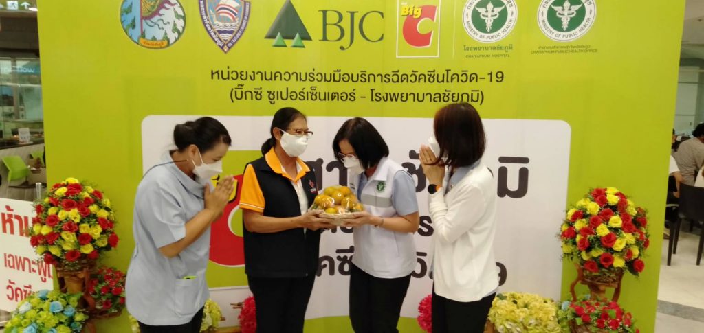ร่วมปฏิบัติหน้าที่ให้บริการกิจกรรมฉีดวัคซีนแก่ประชาชน ณ ห้างสรรพสินค้าบิ๊กซี สาขาชัยภูมิ