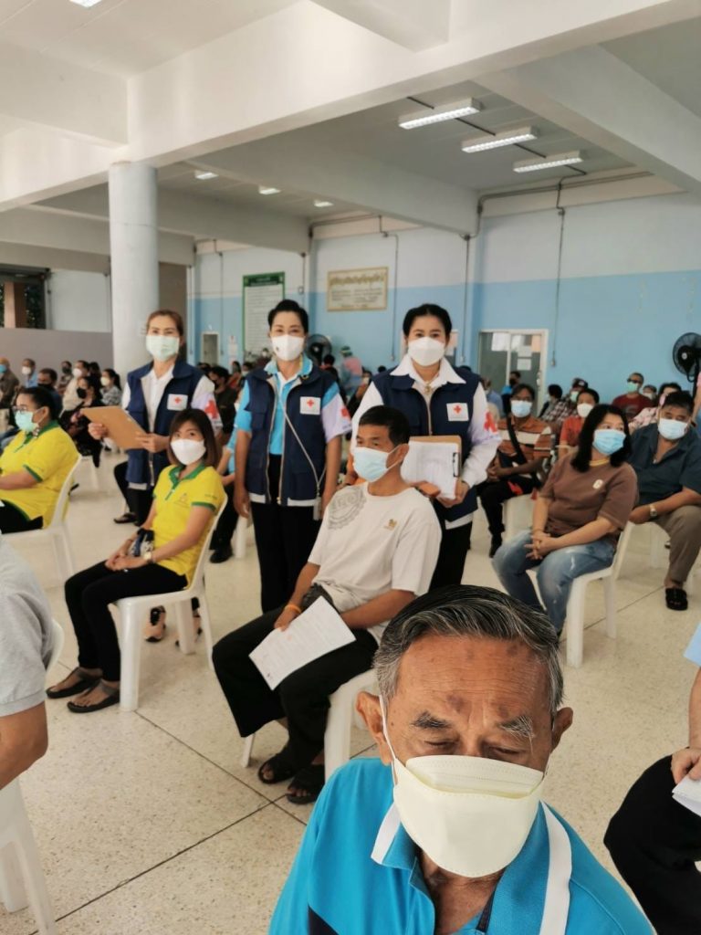 วันที่ 14 มกราคม 2565 นางปิติมา รักพานิชมณี นายกเหล่ากาชาดจังหวัดอุทัยธานี มอบหมายให้สมาชิกเหล่ากาชาดจังหวัดอุทัยธานี ลงพื้นที่ช่วยปฏิบัติงาน ร่วมกับหน่วยงานในพื้นที่บริการฉีดวัคซีนให้แก่ ประชาชนทั่วไปโดยฉีดวัคซีน เข็ม 3 (ไฟเซอร์) ประชาชนทั่วไป จำนวน 890 ราย (แอสตร้าเซเนก้า) เข็ม 3 ประชาชนทั่วไป จำนวน 120 ราย โดยมีอาสาสมัครด้านทั่วไปร่วมปฏิบัติงาน จำนวน 4 ราย ณ จุดบริการฉีดวัคซีนโควิด-19 จังหวัดอุทัยธานี