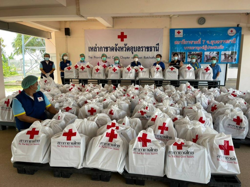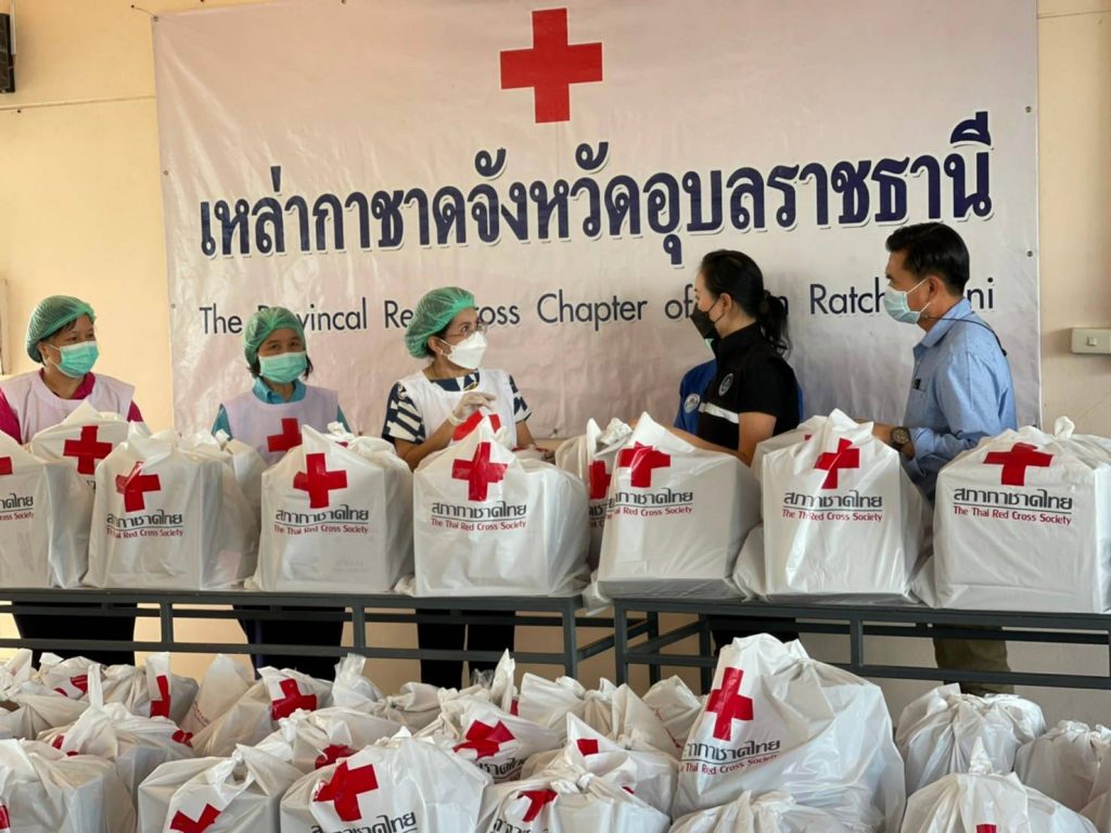 วันที่ 7 มกราคม 2565 นางศลิษา ภิรมย์รัตน์ นายกเหล่ากาชาดจังหวัดอุบลราชธานี พร้อมด้วยนางธัญญาธรณ์ วิทยาขาว หัวหน้าสถานีกาชาดที่ 7 จังหวัดอุบลราชธานี เจ้าหน้าที่สถานีกาชาด 7 จังหวัดอุบลราชธานี เจ้าหน้าที่เหล่ากาชาดจังหวัดอุบลราชธานี ร่วมบรรจุชุดธารน้ำใจกู้ชีวิตฝ่าวิกฤตโควิด-19 จำนวน 175 ชุด โดยการร้องขอของอสม. ผ่านระบบแอปพลิเคชั่น “พ้นภัย” เพื่อมอบกับผู้กักตัว ในเขตเทศบาลนครอุบลราชธานี ณ สำนักงานเหล่ากาชาดจังหวัดอุบลราชธานี โดยมีนางสาวพิศทยา ไชยสงคราม นายกเทศมนตรีนครอุบลราชธานี เป็นผู้รับมอบ เพื่อนำไปส่งมอบให้กับผู้กักตัวดังกล่าวฯ