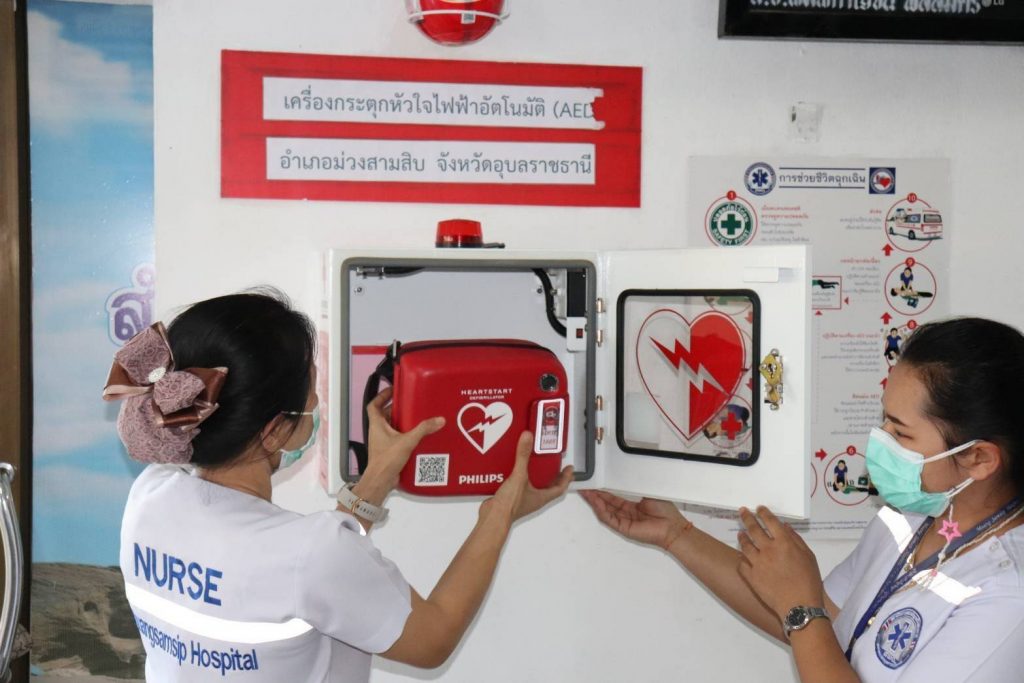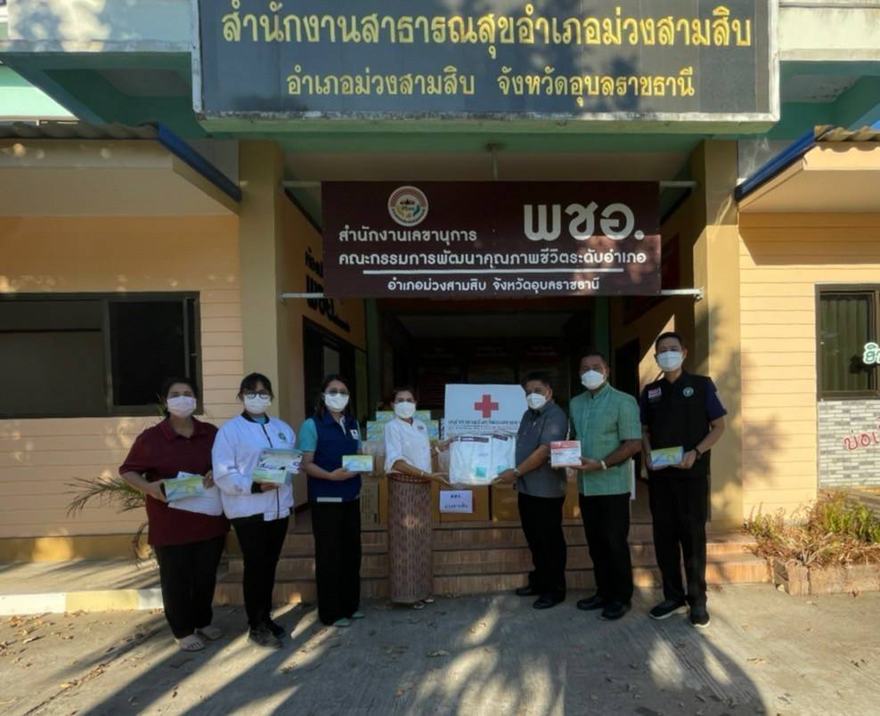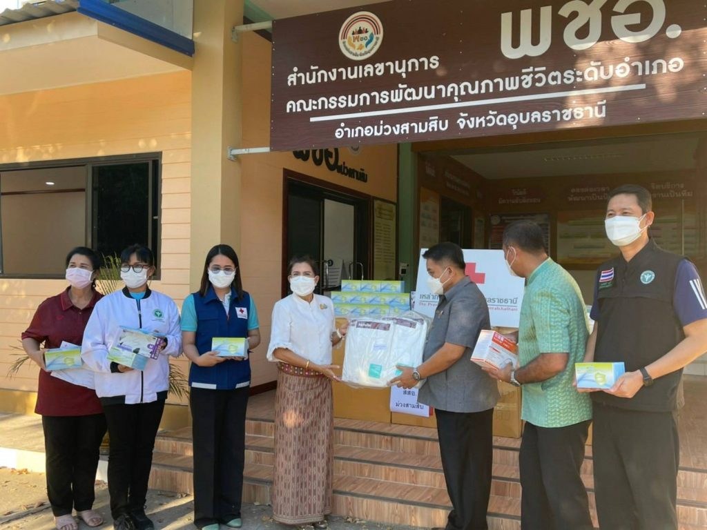 วันที่ 19 มกราคม 2565 นางศลิษา ภิรมย์รัตน์ นายกเหล่ากาชาดจังหวัดอุบลราชธานี พร้อมด้วยนายชินวัตร ทองปรีชา นายอำเภอม่วงสามสิบ ปลัดอำเภอ เจ้าหน้าที่เหล่ากาชาดจังหวัดอุบลราชธานี มอบอุปกรณ์ทางการแพทย์ ซึ่งได้รับการสนับสนุนจาก สำนักงานบรรเทาทุกข์และประชานามัยพิทักษ์ สภากาชาดไทย ให้แก่ นายสมัย พูลทอง สาธารณสุขอำเภอม่วงสามสิบ เพื่อใช้ในการดูแลรักษาผู้ป่วยจากโรคติดเชื้อไวรัสโคโรนา2019 (COVID-19) และสำหรับการป้องกันและควบคุมการแพร่ระบาดของโรค COVID-19 ในท้องที่อำเภอม่วงสามสิบ ณ สำนักงานสาธารณสุขอำม่วงสามสิบ จังหวัดอุบลราชธานีในเวลา 17.30 น. ได้เยี่ยมจุดติดตั้งเครื่องกระตุ๊กหัวใจ ณ ที่ทำการปกครอง อำเภอม่วงสามสิบ จังหวัดอุบลราชธานี