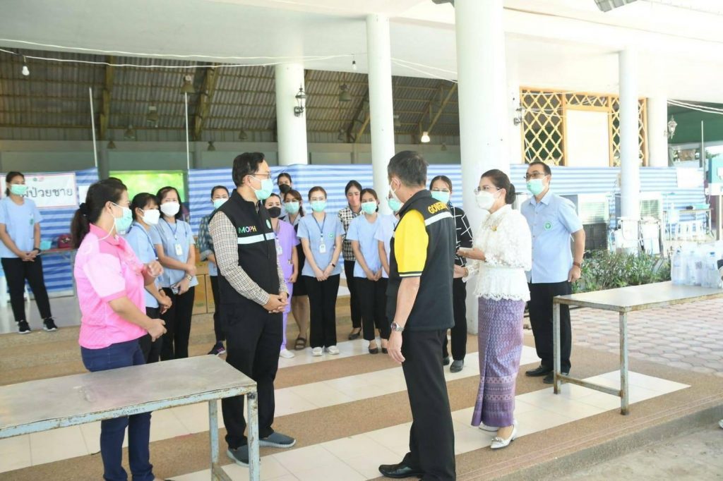 วันที่ 8 มกราคม 2565 นางศลิษา ภิรมย์รัตน์ นายกเหล่ากาชาดจังหวัดอุบลราชธานี พร้อมด้วยนายพงศ์รัตน์ ภิรมย์รัตน์ ผู้ว่าราชการจังหวัดอุบลราชธานี ในฐานะประธานที่ปรึกษาคณะกรรมการเหล่ากาชาดจังหวัดอุบลราชธานี เยี่ยมให้กำลังใจ บุคลากรทางการแพทย์ในการเตรียมพื้นที่ เพื่อดูแลรักษา ผู้ติดเชื้อไวรัสโควิด-19 ณ หอผู้ป่วยพุทธสถานพรหมวชิรญาณ โรงพยาบาล 50 พรรษา มหาวชิราลงกรณ โดยมีนายแพทย์กิตติศักดิ์ ฐานวิเศษ ผู้อำนวยการโรงพยาบาล ๕๐ พรรษา มหาวชิราลงกรณ และคณะกรรมการบริหารโรงพยาบาล ได้รายงานผลการดำเนินงาน ในการบริหารจัดการเตียง จำนวน 200 เตียง โดยแบ่งเป็นโซน หอผู้ป่วยชายและหญิง มีระบบการรักษาความปลอดภัย
