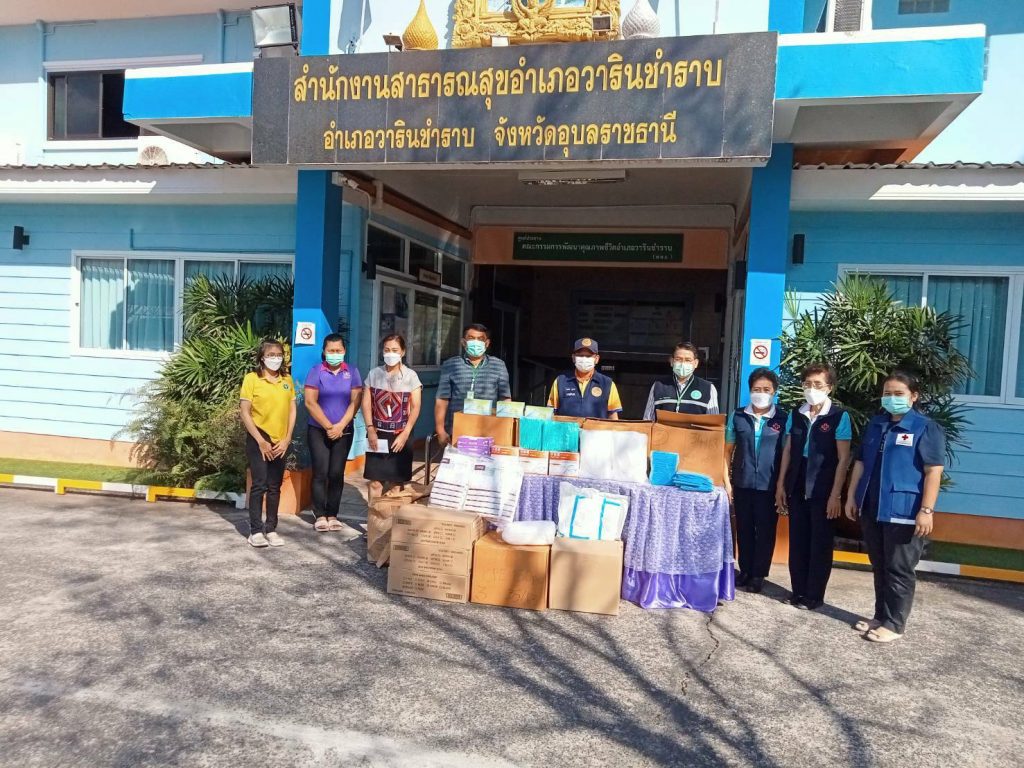 การสนับสนุนจากสำนักงานบรรเทาทุกข์และประชานามัยพิทักษ์ สภากาชาดไทย ให้แก่ นายสัมพันธ์ กุลพร สาธารณสุขอำเภอวารินชำราบ นายสมชัย บูรณะ นายอำเภอวารินชำราบ และคณะเจ้าหน้าที่สาธารณสุขอำเภอวารินชำราบ เพื่อใช้ในการดูแลรักษาผู้ป่วยจากโรคติดเชื้อไวรัสโคโรนา 2019 (COVID-19) และสำหรับการป้องกันและควบคุมการแพร่ระบาดของโรค COVID-19 ในท้องที่อำเภอวารินชำราบ
