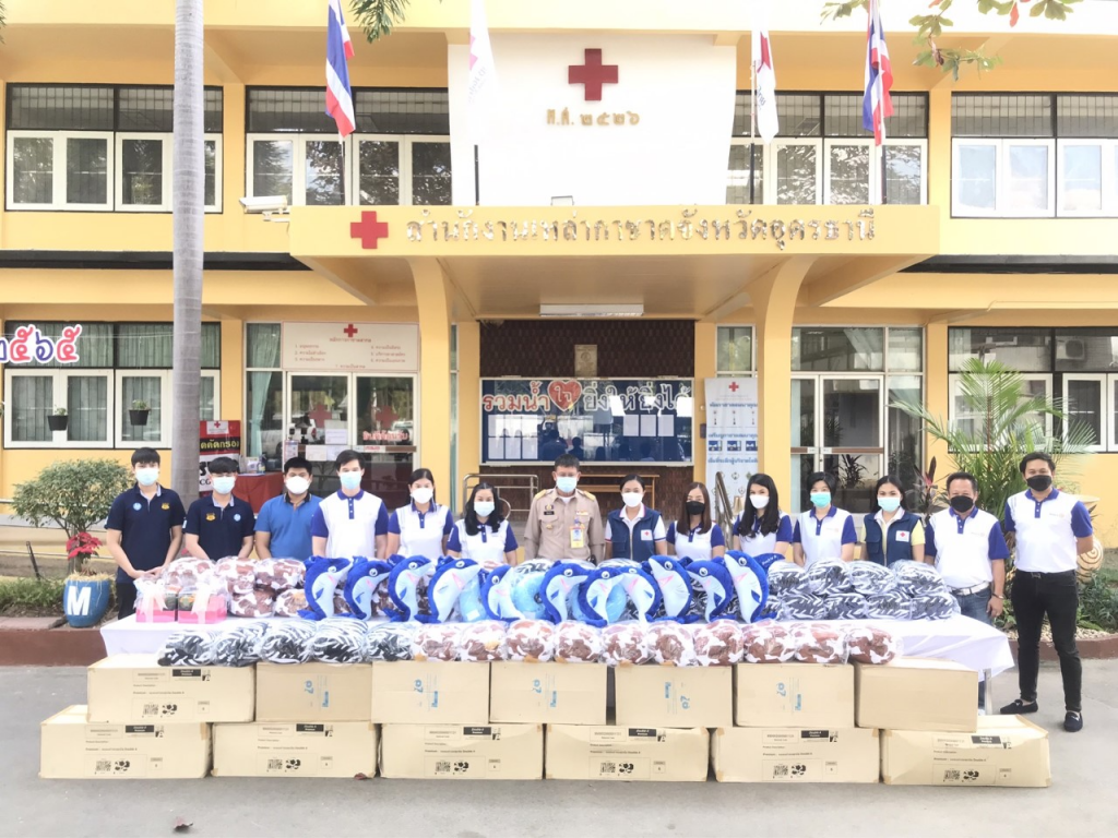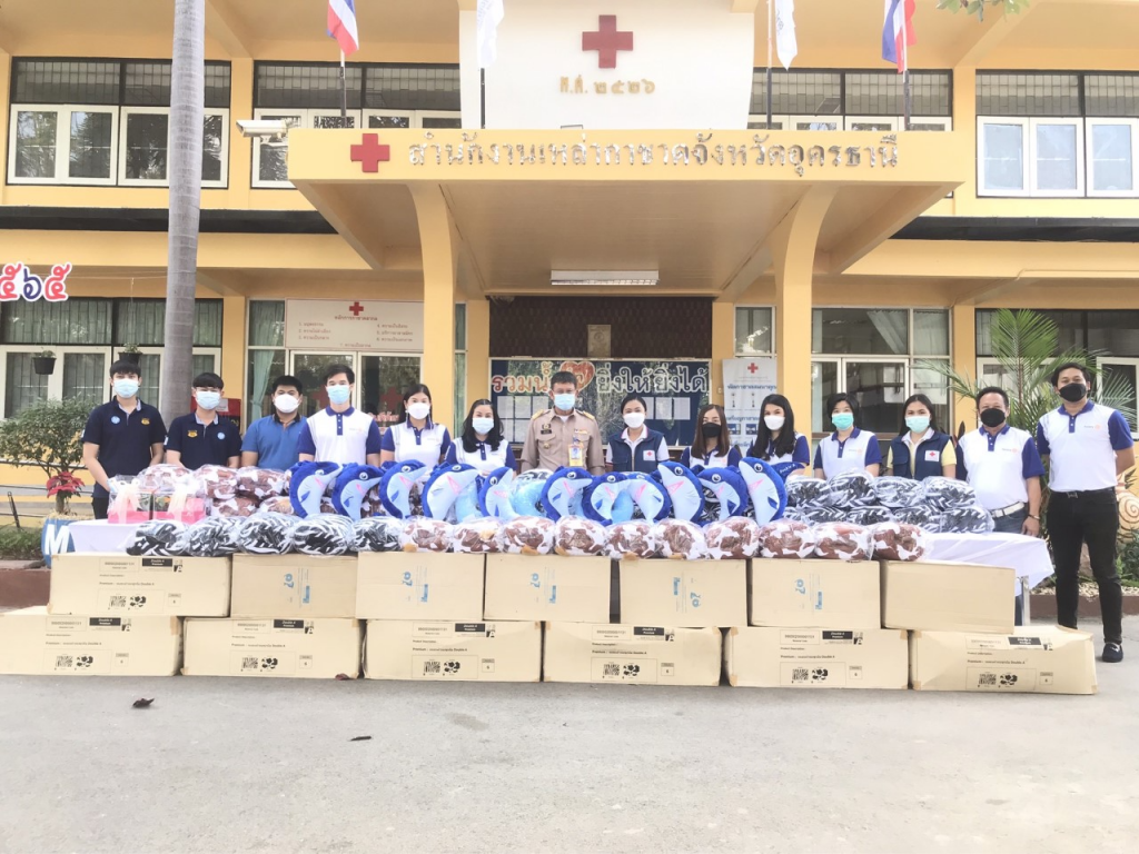 อุดรดุษฎี เป็นหมอนผ้าห่ม จำนวน 100 ชิ้น และหมอนปลาฉลามจำนวน 50 ชิ้น รวม 150 ชิ้น เพื่อใช้ในกิจกรรมของเหล่ากาชาดจังหวัดอุดรธานี ตามพันธกิจทั้ง 8 ด้าน ของสภากาชาดไทย ต่อไป ณ สำนักงานเหล่ากาชาดจังหวัดอุดรธานี อำเภอเมืองอุดรธานี จังหวัดอุดรธานี