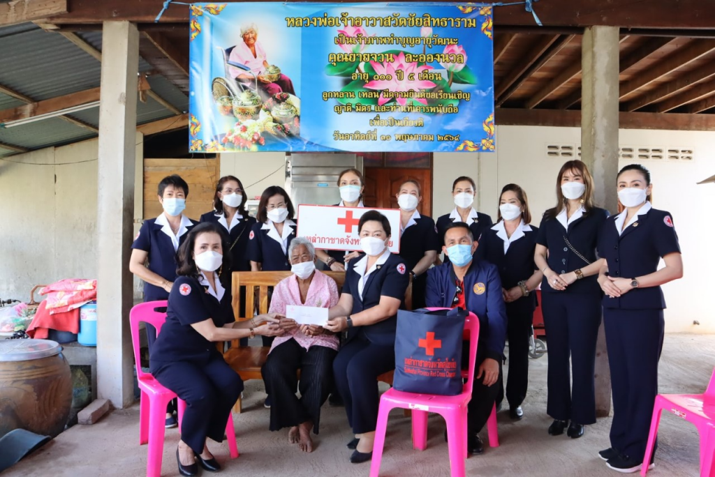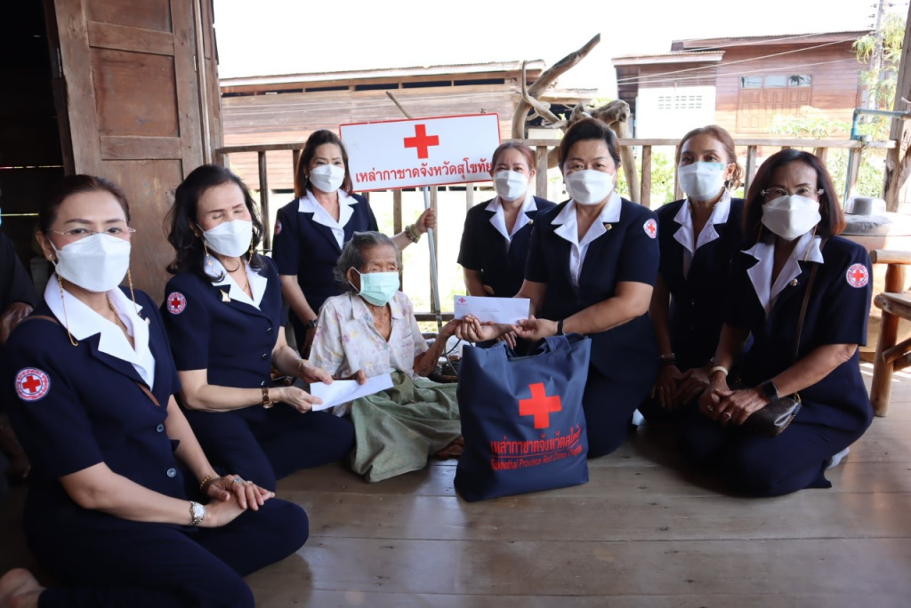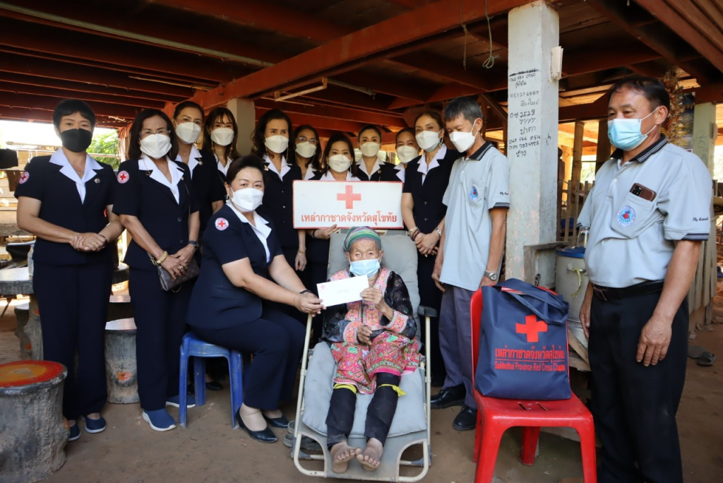 วันที่ 11 มกราคม 2565 นางกนกพร พรรณเทวี นายกเหล่ากาชาดจังหวัดสุโขทัย พร้อมด้วยนายอำเภอศรีสัชนาลัย กรรมการเหล่ากาชาดจังหวัดสุโขทัย กิ่งกาชาดอำเภอศรีสัชนาลัย ปลัดอำเภอ เจ้าหน้าที่สาธารณสุขอำเภอศรีสัชนาลัย เจ้าหน้าที่พัฒนาสังคมและมั่นคงของมนุษย์จังหวัดสุโขทัย และเจ้าหน้าที่เหล่ากาชาดจังหวัดสุโขทัย เยี่ยมผู้สูงอายุ 100 ปีขึ้นไป จำนวน 8 ราย ในพื้นที่อำเภอศรีสัชนาลัย ได้แก่