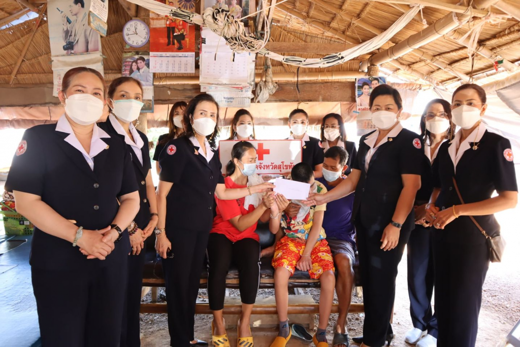 วันที่ 11 มกราคม 2565 นางกนกพร พรรณเทวี นายกเหล่ากาชาดจังหวัดสุโขทัย พร้อมด้วยนายอำเภอศรีสัชนาลัย กรรมการเหล่ากาชาดจังหวัดสุโขทัย กิ่งกาชาดอำเภอศรีสัชนาลัย เจ้าหน้าที่สาธารณสุขอำเภอศรีสัชนาลัย เจ้าหน้าที่พัฒนาสังคมและความมั่นคงของมนุษย์จังหวัดสุโขทัย และเจ้าหน้าที่เหล่ากาชาดจังหวัดสุโขทัย เยี่ยมผู้ป่วยในพระบรมราชานุเคราะห์ ผู้ป่วยในมูลนิธิแพทย์อาสาสมเด็จพระศรีนครินทราบรมราชชนนี (พอ.สว.) จำนวน 2 ราย คือ เด็กชายสวิตต์ ทองจุล ตำบลท่าชัย และเด็กชายณัชภัค เชื้อเถาว์ ตำบลบ้านแก่ง ได้มอบเงินช่วยเหลือ 1,000 บาทและถุุงธารน้ำใจ ในพื้นที่อำเภอศรีสัชนาลัย จังหวัดสุโขทัย
