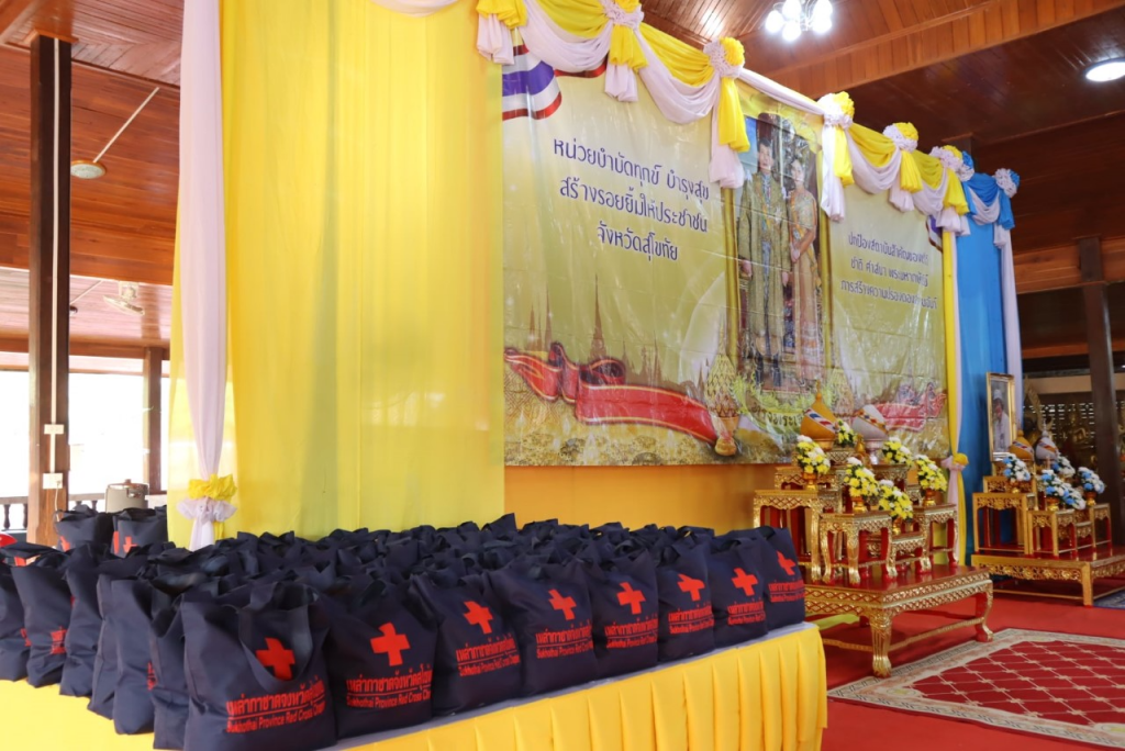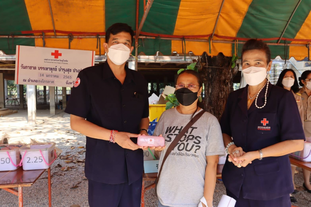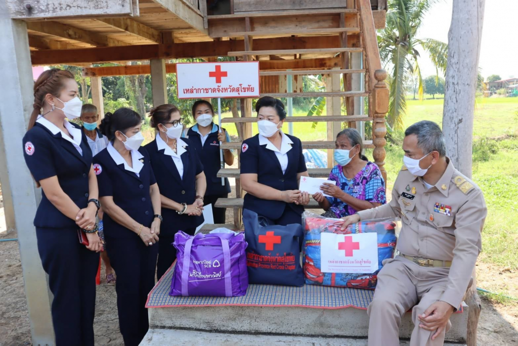 วันที่ 14 มกราคม 2565 นางกนกพร พรรณเทวี นายกเหล่ากาชาดจังหวัดสุโขทัย พร้อมด้วยรองผู้ว่าราชการจังหวัดสุโขทัย รองนายกเหล่ากาชาดจังหวัดสุโขทัย กรรมการและสมาชิกเหล่ากาชาดจังหวัดสุโขทัย ร่วมโครงการหน่วยบำบัดทุกข์ บำรุงสุข สร้างรอยยิ้มให้ประชาชน โดยเหล่ากาชาดจังหวัดสุโขทัย มอบถุงธารน้ำใจให้ผู้ยากไร้ จำนวน 100 ถุง ณ วัดหางตลาด อำเภอกงไกรลาศ จังหวัดสุโขทัย โดยมีนายวิรุฬ พรรณเทวี ผู้ว่าราชการจังหวัดสุโขทัย เป็นประธานในพิธี โดยเหล่ากาชาดจังหวัดสุโขทัยได้จัดทำโครงการมอบแว่นตาให้กับประชาชนที่มาร่วมงานและออกเยี่ยมผู้ตกเกณฑ์ จปฐ. จำนวน 2 ราย คือนางดำ ผ่องแก้ว และนางฉัตรมงคล ผ่องแก้ว เหล่ากาชาดจังหวัดสุโขทัยได้มอบเงินจำนวน 2,000 บาท ถุงธารน้ำใจ และผ้าห่ม
