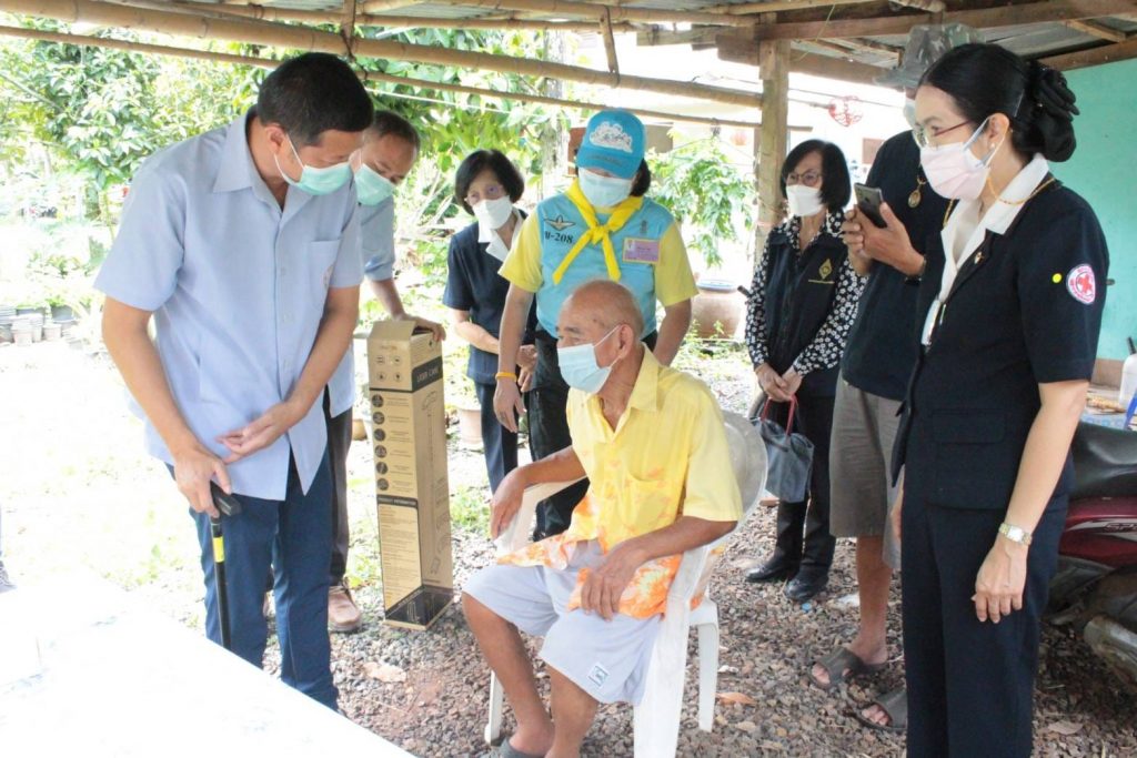 วันที่ 23 มีนาคม 2565 นางมัทนา สุวัณณุสส์ นายกเหล่ากาชาดจังหวัดปราจีนบุรี พร้อมด้วยนางดวงพร สังฆสุวรรณ รองนายกเหล่ากาชาดจังหวัดปราจีนบุรี กรรมการและสมาชิกเหล่ากาชาดจังหวัดปราจีนบุรี พัฒนาสังคมและความมั่นคงของมนุษย์จังหวัดปราจีนบุรี ศูนย์คุ้มครองคนไร้ที่พึ่งจังหวัดปราจีนบุรี สาธารณสุขอำเภอศรีมหาโพธิ ปลัดอำเภอศรีมหาโพธิ ผู้นำท้องที่ ผู้นำท้องถิ่น มอบไม้เท้าเลเซอร์พระราชทานให้กับผู้ป่วยพาร์กินสัน นายเฉลา คมคาย บ้านเลขที่ 97 หมู่ที่ 1 ตำบลดงกระทงยาม อำเภอศรีมหาโพธิ จังหวัดปราจีนบุรี ทั้งนี้ ได้สาธิตวิธีการใช้ไม้เท้าเลเซอร์พระราชทาน และเหล่ากาชาดจังหวัดปราจีนบุรี มอบอุปโภค บริโภค จำนวน 1 ชุด นมดัชมิลด์ จำนวน 1 ลัง ให้กับผู้ป่วย