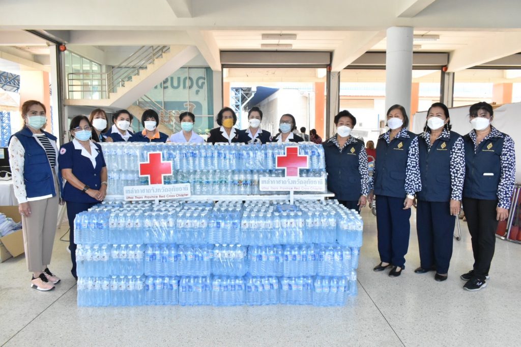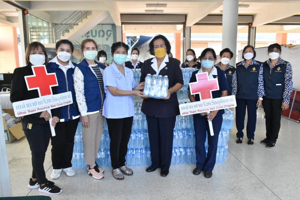 วันที่ 20 มกราคม 2565 นางปิติมา รักพานิชมณี นายกเหล่ากาชาดจังหวัดอุทัยธานี มอบหมายให้สมาชิกเหล่ากาชาดจังหวัดอุทัยธานี ร่วมเป็นส่วนหนึ่งในการ “ รวมใจปันน้ำใจ สู้ภัย COVID-19 ” โดยมอบน้ำดื่ม จำนวน 258 แพ็ค เพื่อสนับสนุนบุคลากรทางการแพทย์ และผู้มารับบริการฉีดวัคซีน ณ ศูนย์กีฬาเยาวชนเทศบาลเมืองอุทัยธานี เนื่องจาก สถานการณ์ในปัจจุบัน มีจำนวนผู้มารับบริการฉีดวัคซีนอย่างต่อเนื่อง ทำให้มีการใช้ “น้ำดื่ม” ในปริมาณเพิ่มขึ้น ทั้งนี้ได้ร่วมบริจาคน้ำดื่ม จำนวน 258 แพ็ค ให้กับ จุดบริการฉีดวัคซีน COVID-19 จังหวัดอุทัยธานี