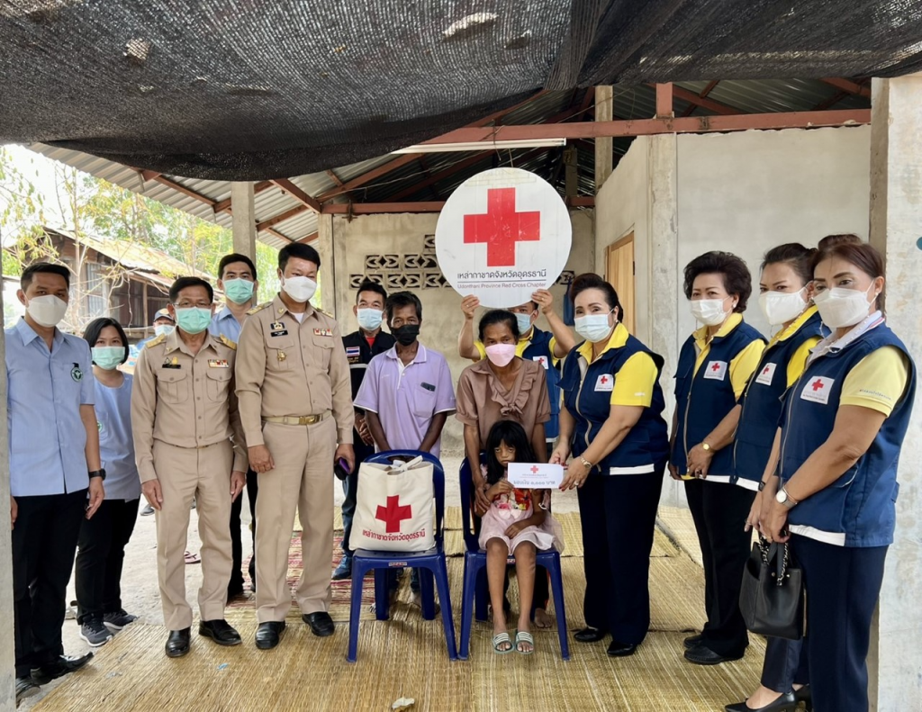 วันที่ 14 มีนาคม 2565 นางอรจิรา ศิริมงคล นายกเหล่ากาชาดจังหวัดอุดรธานี มอบหมายให้นางณัฐวดี ลีลาเลิศแล้ว รองนายกเหล่ากาชาดจังหวัดอุดรธานี พร้อมด้วยคณะกรรมการและเจ้าหน้าที่เหล่ากาชาดจังหวัดอุดรธานี ลงพื้นที่เยี่ยมติดตามเพื่อให้ความช่วยเหลือผู้ป่วยในพระราชานุเคราะห์ฯ ตามโครงการ “เยี่ยมยามถามไถ่” ในพื้นที่อำเภอทุ่งฝน จำนวน 3 ราย ในการนี้ นายกำธร วิเชฏฐพงศ์ นายอำเภอทุ่งฝน ผู้แทนสาธารณสุขอำเภอ อาสาสมัครสาธารณสุขประจำหมู่บ้าน และหน่วยงานที่เกี่ยวข้องร่วมเยี่ยมเป็นกำลังใจและให้ข้อมูล ซึ่งเหล่ากาชาดจังหวัดอุดรธานี ได้มอบเงินสงเคราะห์ รายละ 1,000 บาท พร้อมชุดเครื่องอุปโภคบริโภค และไม้เท้าพยุงเดิน และตำรวจภูธรทุ่งฝน มอบชุดเครื่องอุปโภคบริโภค ให้ผู้ป่วยทุกราย ทั้งนี้ นางณัฐวดี ลีลาเลิศแล้ว มอบเงินส่วนตัว จำนวน 2,500 บาท เพื่อเป็นกำลังใจให้กับผู้ป่วยและครอบครัว – ณ ตำบลทุ่งฝน และตำบลนาทม อำเภอทุ่งฝน จังหวัดอุดรธานี