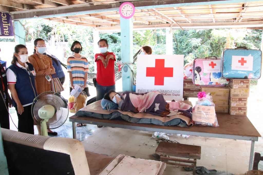 โดยเหล่ากาชาดฯ มอบเงินช่วยเหลือจำนวน 5,000 บาท เครื่องอุปโภค-บริโภค พร้อมผ้าห่มนวม 2 ชุด และผลิตภัณฑ์ดัชมิลล์ยูเอชที จำนวน