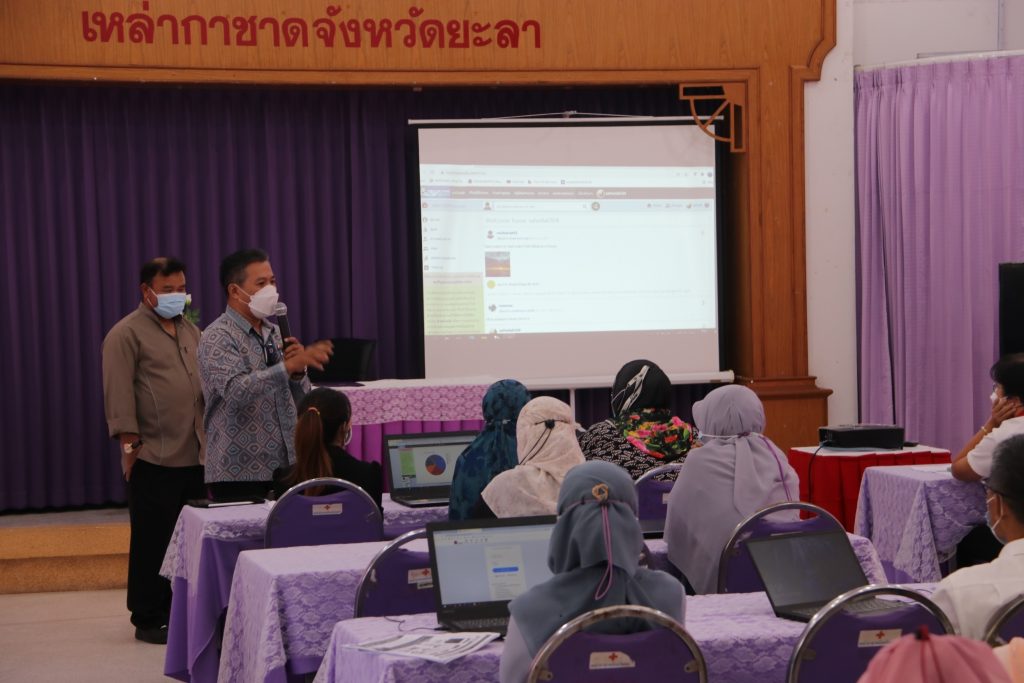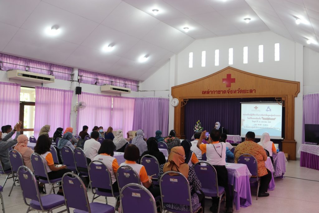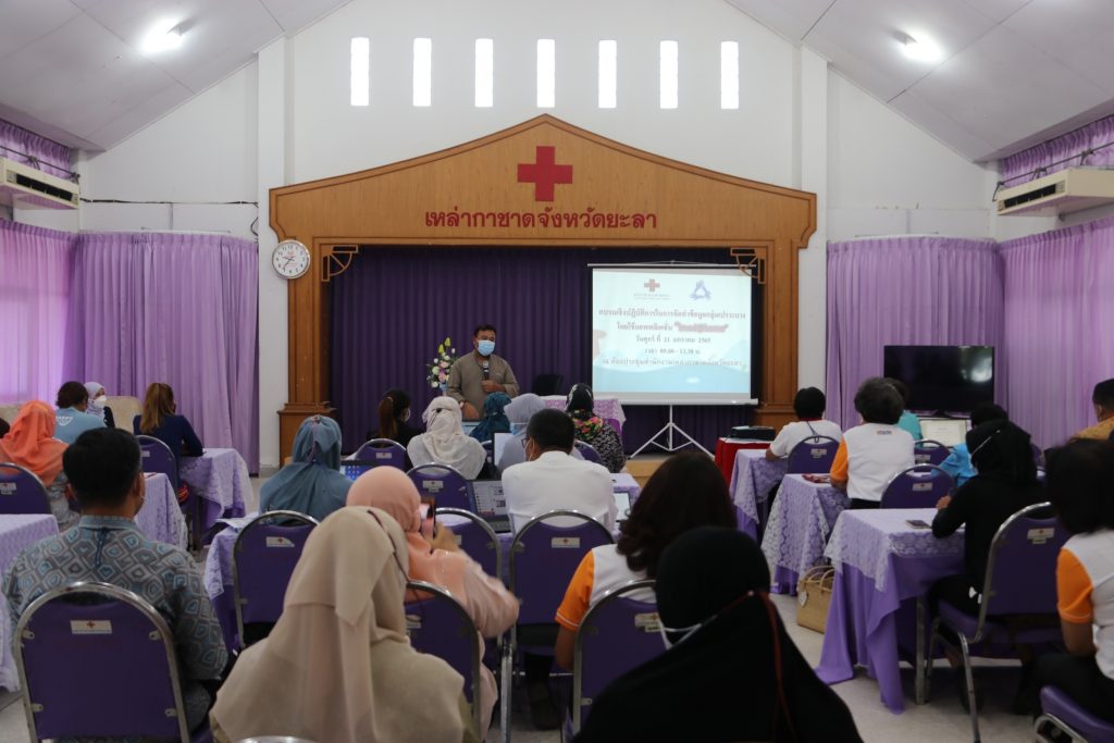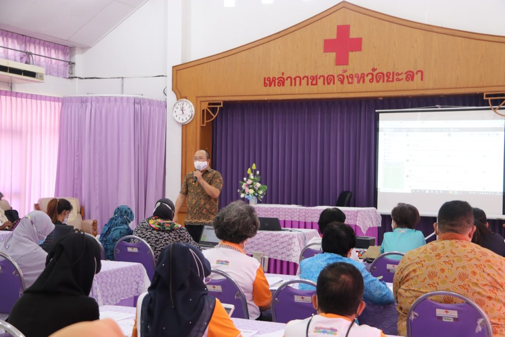 เหล่ากาชาจังหวัดยะลา กล่าวต้อนผู้เข้าร่วมอบรมเชิงปฏิบัติการในการจัดทำฐานข้อมูลกลุ่มเปราะบางในพื้นที่จังหวัดยะลา โดยใช้