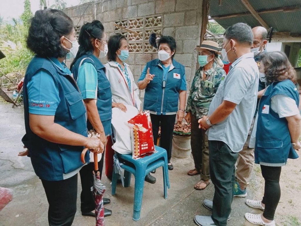 วันที่ 8 เมษายน 2565 นางถนอมศรี รัตนรักษ์ นายกกิ่งกาชาดอำเภอเกาะสมุย พร้อมด้วยนางอาภรณ์ ยืนนาน รองนายกกิ่งกาชาดอำเภอเกาะสมุยนางสุวรรณา แก้วมีศรี รองนายกกิ่งกาชาดอำเภอเกาะสมุยกรรมการกิ่งกาชาดอำเภอเกาะสมุย สมาชิกกิ่งกาชาดอำเภอเกาะสมุยสมาชิกสภาเทศบาลนครเกาะสมุยและ กรรมการชุมชนสระเกศ หมู่ที่ 1 ตำบลตลิ่งงามร่วมลงพื้นที่เพื่อเยี่ยมครอบครัว นางถวิลศรี แสนเมืองบ้านเลขที่ 80 หมู่ที่ 1 ตำบลตลิ่งงามอำเภอเกาะสมุย จังหวัดสุราษฎร์ธานี เนื่องจากเมื่อวันที่ 5 เมษายน 2565 ได้เกิดฝนตกหนัก ลมพัดแรง
