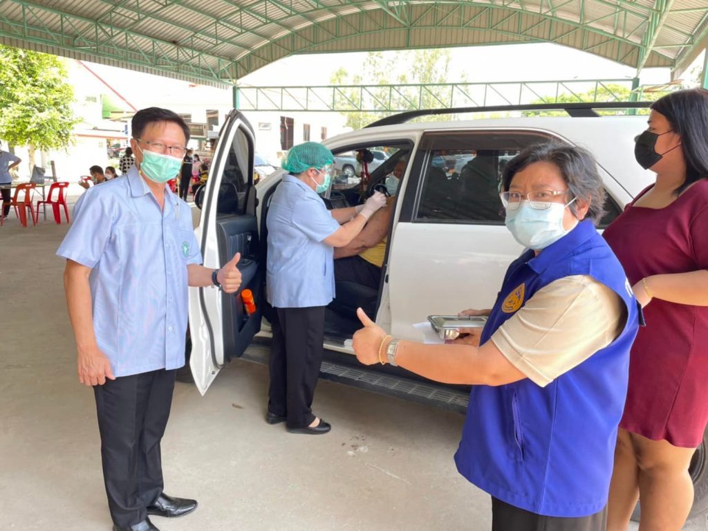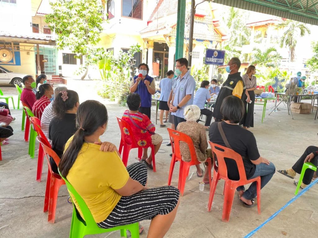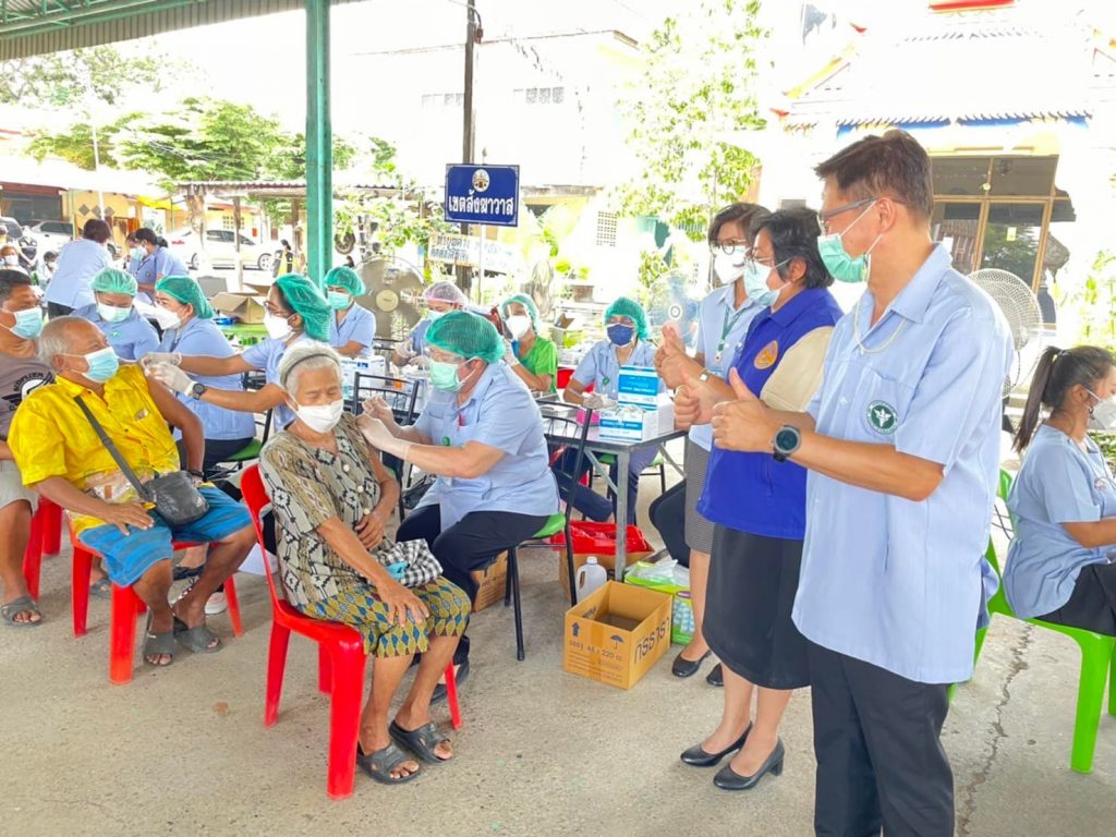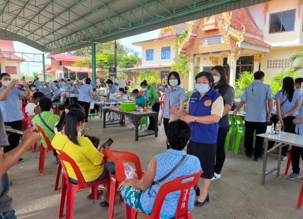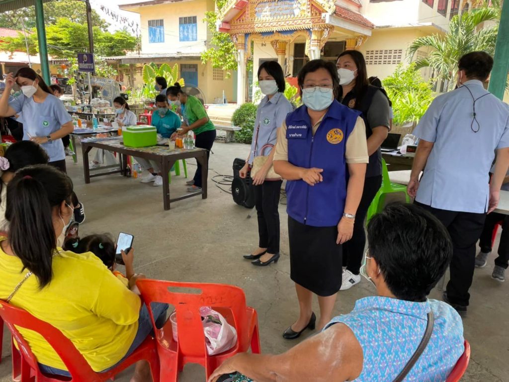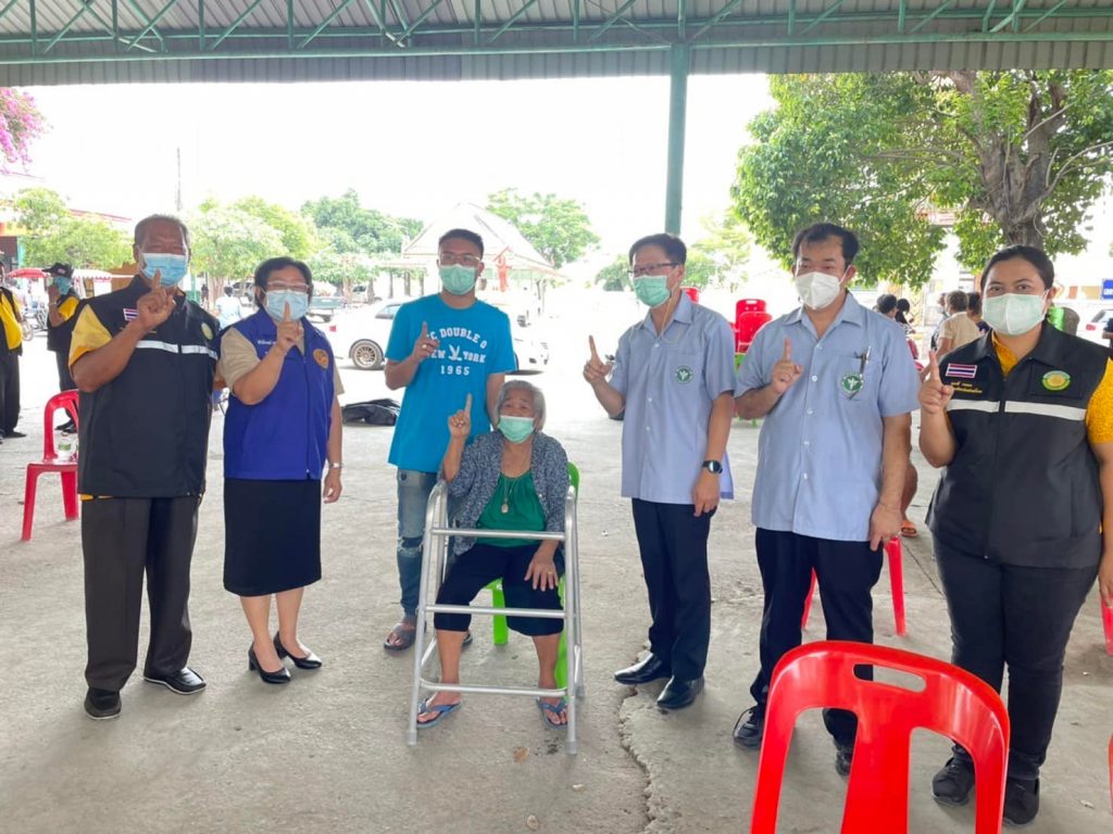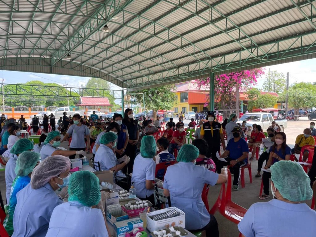 นายวิสุทธิ์ รอดคำ สาธารณสุขอำเภออินทร์บุรี พร้อมเจ้าหน้าที่สาธารณสุขอำเภออินทร์บุรี ผู้อำนวยการโรงพยาบาลส่งเสริมสุขภาพตำบล บูรณาการร่วมกับนายแพทย์ธงชัย เขมรัตน์ตระกูล ผู้อำนวยการโรงพยาบาลอินทร์บุรี ฉีดวัคซีนป้องกันเชื้อไวรัสโควิด-19 ให้กับกลุ่มเป้าหมาย 608 นอกโรงพยาบาล วันนี้เป็นครั้งที่ 3 เพื่ออำนวยความสะดวกให้กับกลุ่มเป้าหมาย ณ โดมเอนกประสงค์วัดแหลมทอง หมู่ 10