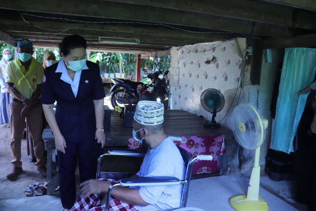 สมาชิกชมรมแม่บ้านมหาดไทยจังหวัดยะลา ร่วมกับ นายวิมุตติ อำนักมณี นายอำเภอกรงปินัง หน่วยกำลัง ผู้นำท้องที่ ลงพื้นที่เยี่ยม