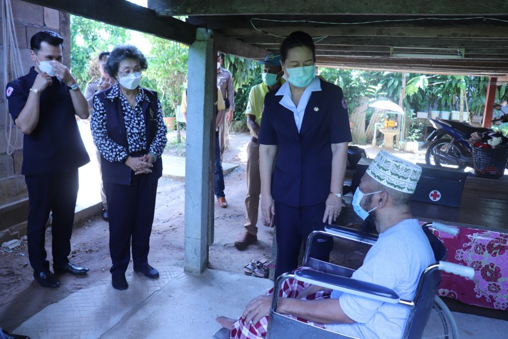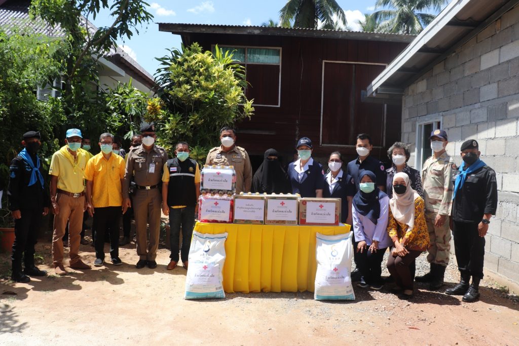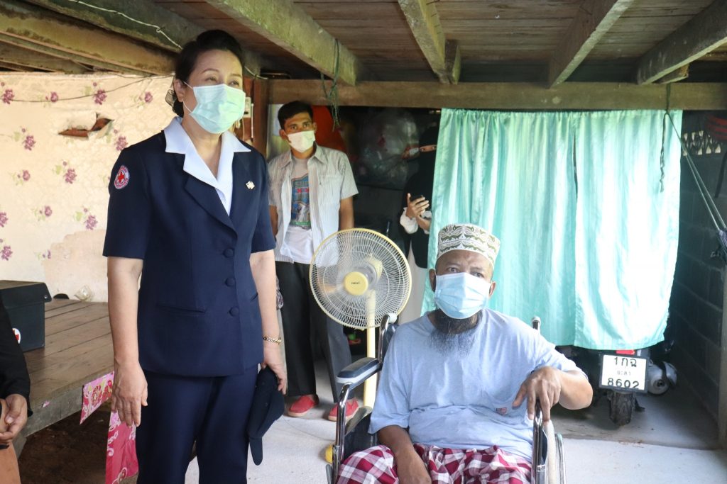 และไม่สามารถประกอบอาชีพ เหล่ากาชาดจังหวัดยะลาสนับสนุนสิ่งของเพื่อเป็นทุนประกอบอาชีพ จำนวน 5,000 บาท และมอบชุด