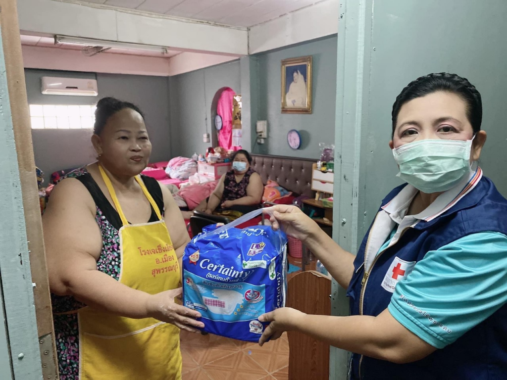 วันที่ 21 เมษายน 2565 นางนภัสสร สุวรรณประทีป นายกเหล่ากาชาดจังหวัดสุพรรณบุรี พร้อมด้วยที่ปรึกษา และกรรมการเหล่ากาชาดจังหวัด ลงพื้นที่เยี่ยมให้กำลังใจผู้ป่วยติดเตียง ราย นางสาวธันย์พิศา ศรีเมือง โดย เหล่ากาชาดจังหวัดสุพรรณบุรี มอบเครื่องอุปโภค – บริโภค จำนวน