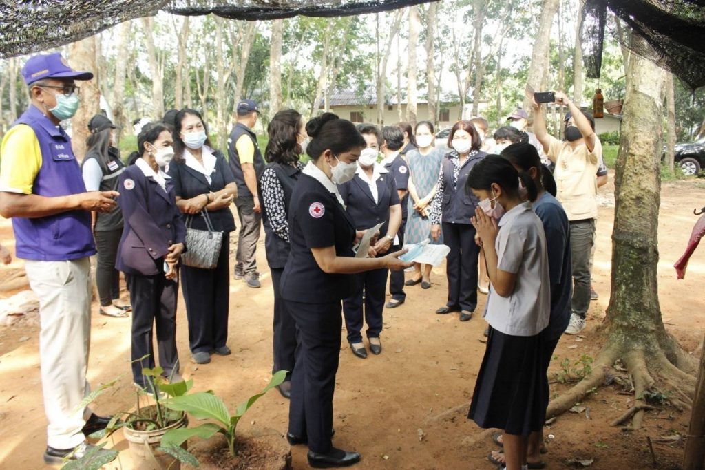วันที่ 11 เมษายน 2565 นางอุรสา จินโต นายกเหล่ากาชาดจังหวัดสุราษฎร์ธานี ประธานแม่บ้านมหาดไทยจังหวัดสุราษฎร์ธานี พร้อมด้วย นางศุภลักษณ์ พรมสินธุรองนายกเหล่ากาชาดจังหวัดสุราษฎร์ธานี รองประธานแม่บ้านมหาดไทยจังหวัดสุราษฎร์ธานีกรรมการเหล่ากาชาดจังหวัดสุราษฎร์ธานีสมาชิกเหล่ากาชาดจังหวัดสุราษฎร์ธานีและ สมาชิกชมรมแม่บ้านมหาดไทยจังหวัดสุราษฎร์ธานีร่วมลงพื้นที่ อำเภอท่าฉาง จังหวัดสุราษฎร์ธานีเพื่อเยี่ยมบ้านนักเรียนทุนจากเหล่ากาชาดจังหวัดสุราษฎร์ธานี ราย เด็กหญิงณัฐมล แก้วบัวดีบ้านเลขที่ 38 หมู่ที่ 5 ตำบลเขาถ่านอำเภอท่าฉาง จังหวัดสุราษฎร์ธานี โดยมี นายสุกิจ มีพริ้ง นายอำเภอท่าฉางพร้อมด้วย นางศรีเวียง มีพริ้งผอ.ศูนย์วิจัยและพัฒนาการเกษตร/ภรรยานายอำเภอท่าฉางพัฒนากรอำเภอ ครูโรงเรียนบ้านควนรา ผู้ใหญ่บ้านผู้ช่วยผู้ใหญ่บ้านและผู้ที่เกี่ยวข้องร่วมในการลงพื้นที่ ในครั้งนี้ด้วย