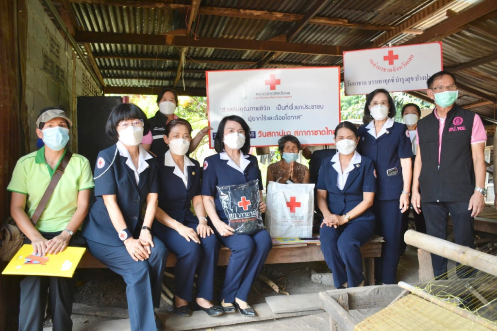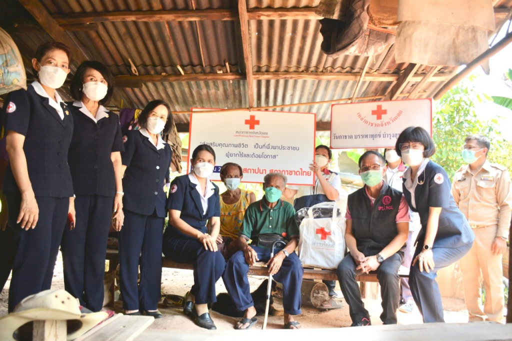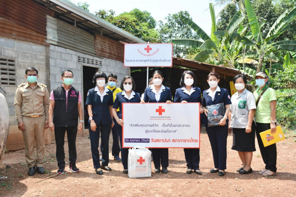 วันที่ 26 เมษายน 2565 นางนงค์นิตย์ เนียมศิริ นายกเหล่ากาชาดจังหวัดเลย มอบหมายให้นางขนิษฐา พินิจพานิชย์ รองนายกเหล่ากาชาดจังหวัดเลยกรรมการเหล่ากาชาดจังหวัดเลยร่วมกับ พม.จ.เลย , อำเภอผาขาว สาธารณสุขอำเภอผาขาว ชมรมแม่บ้านมหาดไทยจังหวัดเลย ออกเยี่ยมให้กำลังใจราษฎรกลุ่มเปราะบางในสังคม ผู้ป่วย ผู้สูงอายุ ผู้ยากไร้ และผู้ด้อยโอกาส เนื่องในวันสถาปนา สภากาชาดไทย 26 เมษายน 2565 พื้นที่ บ.ห้วยกาบเปลือย ต.โนนป่าซาง อ.ผาขาว จ.เลย จำนวน 6 ราย ดังต่อไปนี้