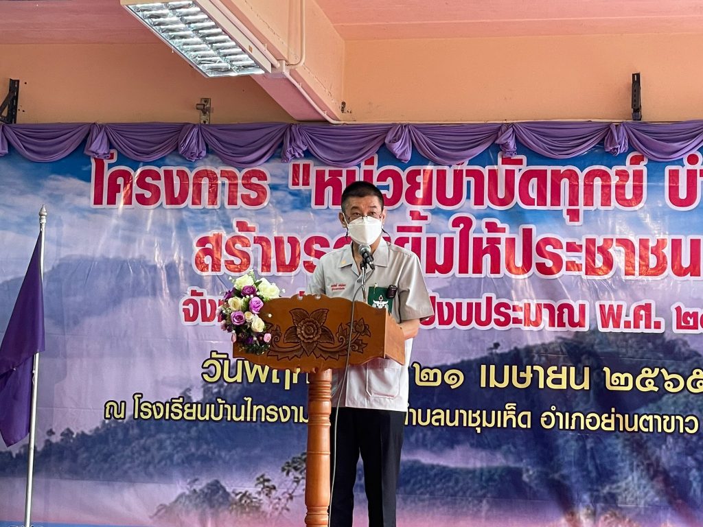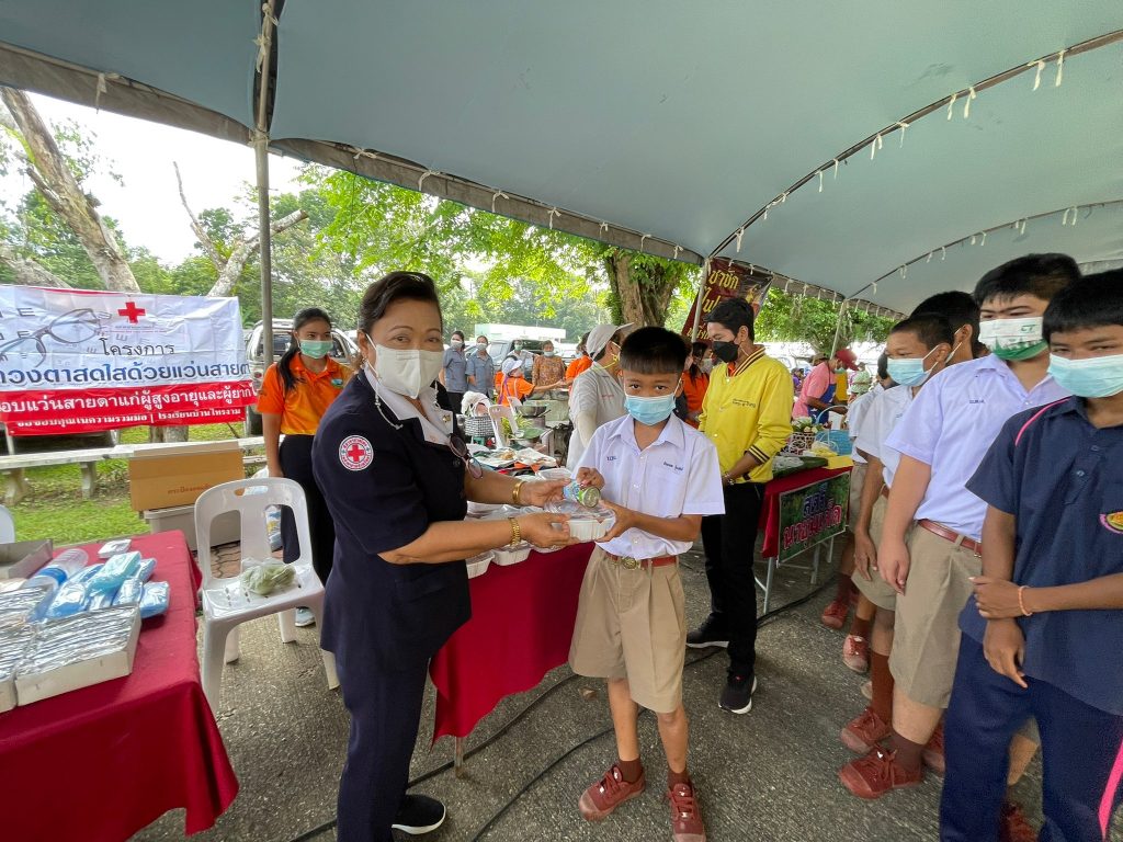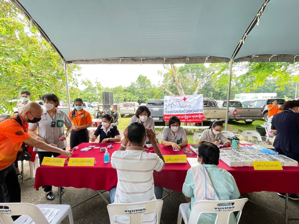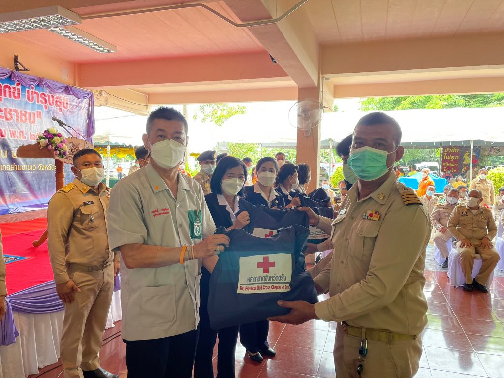 วันที่ 21 เมษายน 2565 นางละมัย เจริญโสภา นายกเหล่ากาชาดจังหวัดตรัง พร้อมด้วยคณะกรรมการและสมาชิกเหล่ากาชาดจังหวัดตรัง ร่วมโครงการ “หน่วยบำบัดทุกข์ บำรุงสุข สร้างรอยยิ้มให้ประชาชน” จังหวัดตรัง และร่วมออกหน่วยแพทย์เคลื่อนที่ พอ.สว. ออกให้บริการประชาชน ออกให้บริการประชาชน ณ โรงเรียนบ้านไทรงาม ต.นาชุมเห็ด อ.ย่านตาขาว จ.ตรัง โดยมีนายขจรศักดิ์ เจริญโสภา ผู้ว่าราชการจังหวัดตรัง เป็นประธานในพิธี ในการนี้ เหล่ากาชาดจังหวัดตรัง มอบเครื่องอุปโภคบริโภคให้ผู้สูงอายุ ผู้พิการ และผู้ป่วยติดเตียง จำนวน 100 ชุด มอบแว่นสายตาให้ผู้สูงวัยและผู้ยากไร้จำนวน 230 อัน และมอบนมและขนมให้เด็กในพื้นที่