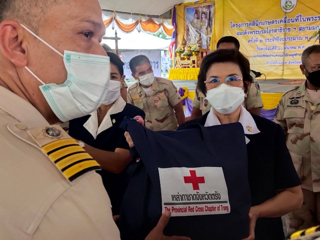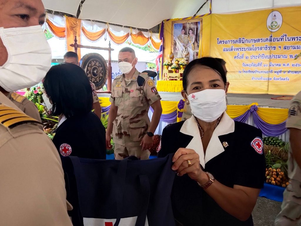 วันที่ 10 มีนาคม 2565 นางละมัย เจริญโสภา นายกเหล่ากาชาดจังหวัดตรัง พร้อมด้วยนางมินตรา อรทัย รองนายกเหล่ากาชาดจังหวัดตรัง คณะกรรมการ ,สมาชิกเหล่ากาชาดจังหวัดตรัง และจิตอาสาสภากาชาดไทย ร่วมโครงการ ” หน่วยบำบัดทุกข์ บำรุงสุข สร้างรอยยิ้มให้ประชาชน ” จังหวัดตรัง และเปิดคลีนิคเกษตรเคลื่อนที่ในพระราชานุเคราะห์ ออกให้บริการประชาชน ณ โรงเรียนวัดควนอารี ต.บางดี อ.ห้วยยอด จ.ตรัง โดยมีนายขจรศักดิ์ เจริญโสภา ผู้ว่าราชการจังหวัดตรัง เป็นประธานในพิธี ในการนี้ เหล่ากาชาดจังหวัดตรัง มอบเครื่องอุปโภคบริโภคให้ผู้สูงอายุ ผู้พิการ และผู้ป่วยติดเตียง จำนวน 100 ชุด มอบแว่นสายตาให้ผู้สูงวัยและผู้ยากไร้จำนวน 232 อัน จากนั้น นายกเหล่ากาชาดจังหวัดตรังและคณะได้ลงพื้นที่เยี่ยมผู้ป่วยติดเตียงจำนวน 4 ราย