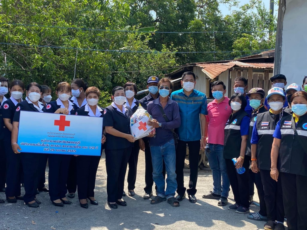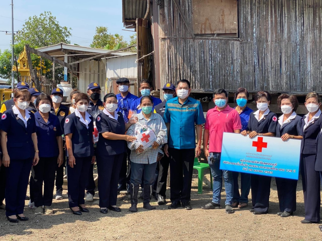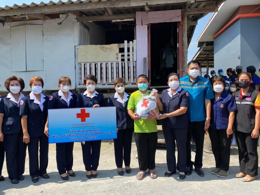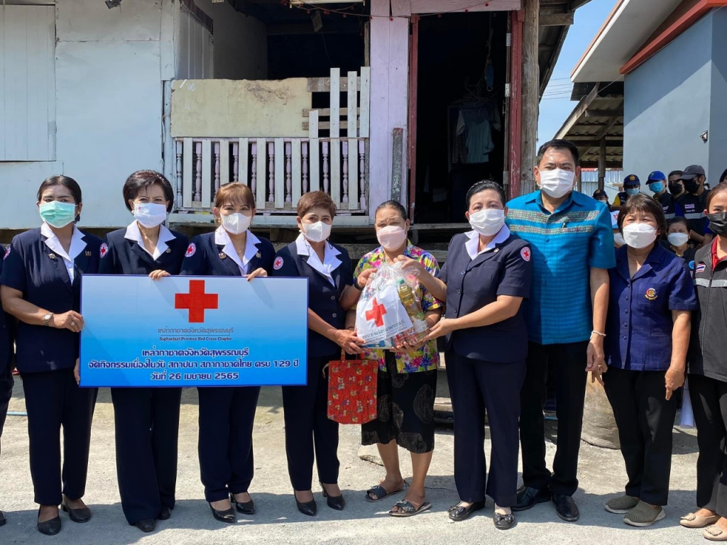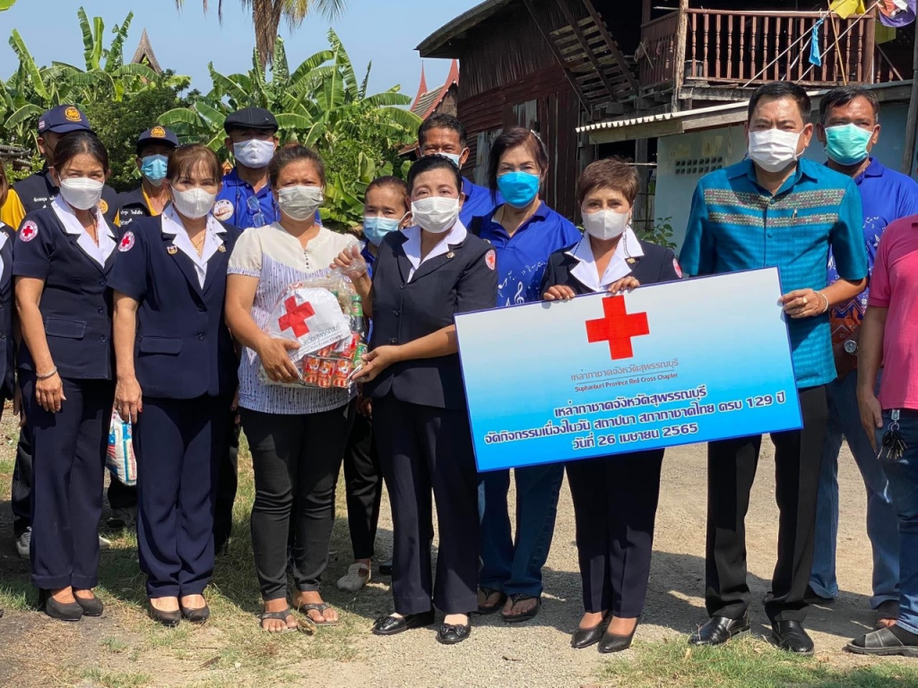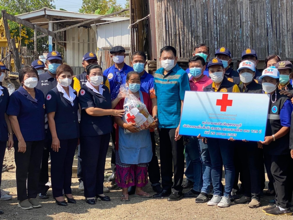 วันที่ 26 เมษายน 2565 นางนภัสสร สุวรรณประทีป นายกเหล่ากาชาดจังหวัดสุพรรณบุรี พร้อมด้วยที่ปรึกษา คณะกรรมการ และสมาชิกเหล่ากาชาดจังหวัด ลงพื้นที่เยี่ยมให้กำลังใจครัวเรือนยากจน ผู้ป่วย ผู้พิการ ตามโครงการขจัดความยากจนและพัฒนาคนทุกช่วงวัยอย่างยั่งยืน ตามหลักปรัชญาของเศรษฐกิจพอเพียง เนื่องในวันคล้ายวันสถาปนาสภากาชาดไทย ครบ 129 ปี โดยเหล่ากาชาดจังหวัดสุพรรณบุรี มอบเครื่องอุปโภค-บริโภค ให้แก่