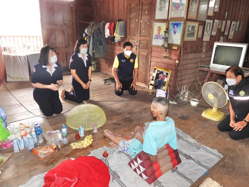 เหล่ากาชาดจังหวัดชัยนาท ที่ปรึกษาเหล่ากาชาดจังหวัดชัยนาท เจ้าหน้าที่สำนักงานพัฒนาสังคมและความมั่นคงของมนุษย์จังหวัดชัยนาท และนายณัฐวุฒิ ตั่งสินชัย นายอำเภอสรรพยา รองนายกเทศมนตรีตำบลตลุก เจ้าหน้าที่ โรงพยาบาลส่งเสริมสุขภาพประจำตำบลบ้านหนอง กำนัน ผู้ใหญ่บ้าน และ อสม. ลงพื้นที่เยี่ยมเยียนและให้กำลังใจนายสมทรง บี่สา ผู้ป่วยติดเตียง ที่ป่วยเป็นโรคกล้ามเนื้ออ่อนแรง สมองช้า