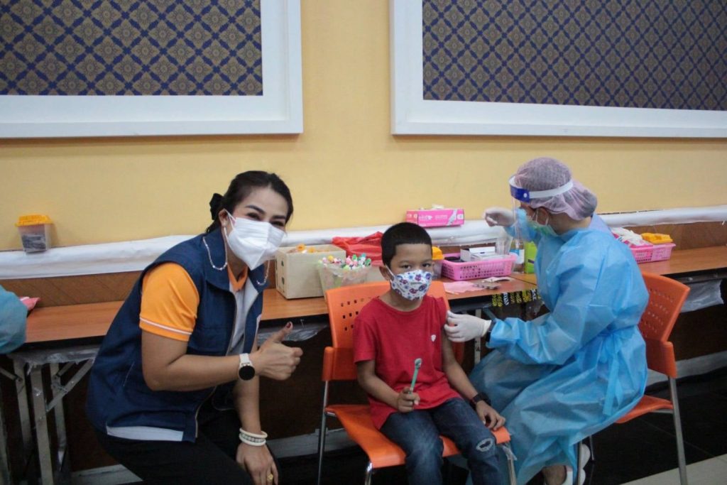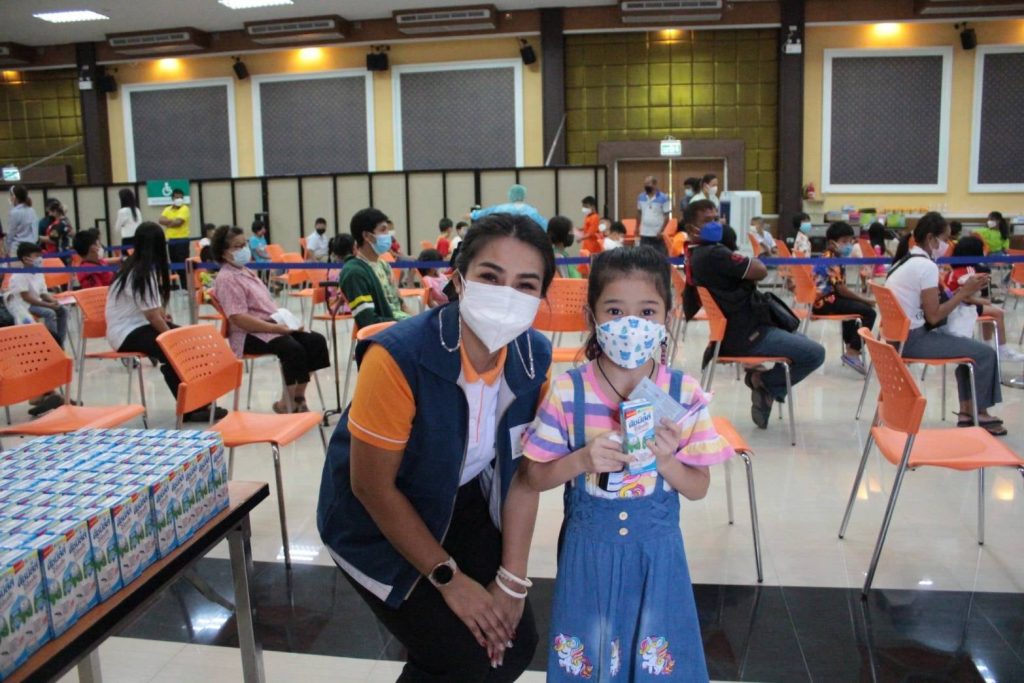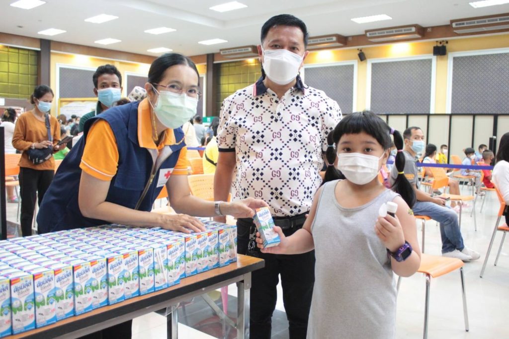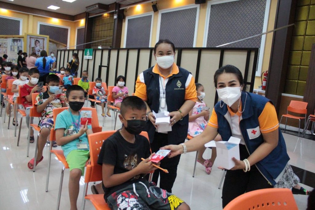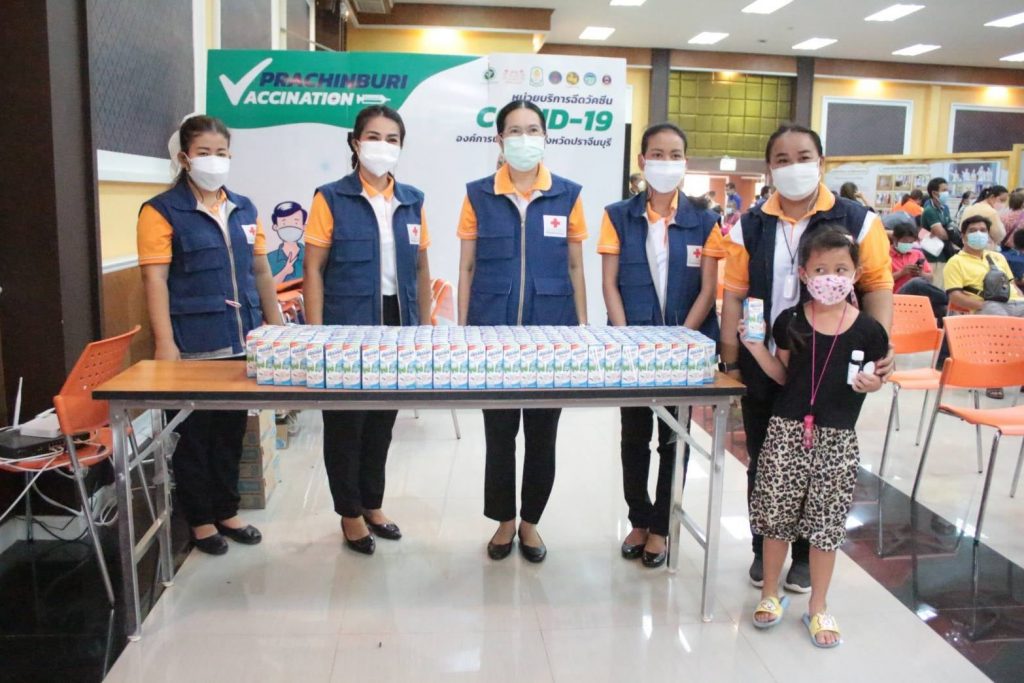 วันที่ 10 มีนาคม 2565 นางมัทนา สุวัณณุสส์ นายกเหล่ากาชาดจังหวัดปราจีนบุรี พร้อมด้วยนางรมิดา เรียงเงิน รามัญ รองนายกเหล่ากาชาดจังหวัดปราจีนบุรีและเจ้าหน้าที่สำนักงานเหล่ากาชาจังหวัดปราจีนบุรี ลงพื้นที่ตรวจเยี่ยมการให้บริการฉีดวัคซีนเพื่อป้องกันโรคติดเชื้อไวรัสโคโรนา 2019 (COVID-19) เข็มที่ 1 สำหรับเด็กนักเรียนอายุ 5 – 11 ปี ที่ยังไม่ได้รับวัคซีน และประชาชนทั่วไป ณ หอประชุมองค์การบริหารส่วนจังหวัดปราจีนบุรีต.หน้าเมือง อ.เมืองปราจีนบุรี จ.ปราจีนบุรี ทั้งนี้ เหล่ากาชาดจังหวัดปราจีนบุรี มอบนมกล่องยูเอสที และนมอัดเม็ด ให้กับเด็กนักเรียน เพื่อเป็นขวัญและกำลังใจ และมอบหน้ากากอนามัย ให้กับ ประชาชนทั่วไป เพื่อป้องกันการแพร่ระบาดเชื้อไวรัสโคโรนา 2019 ครั้งนี้ด้วย