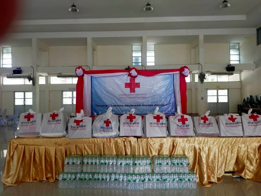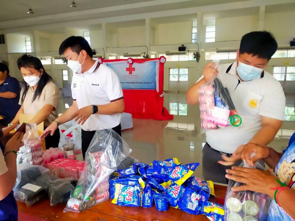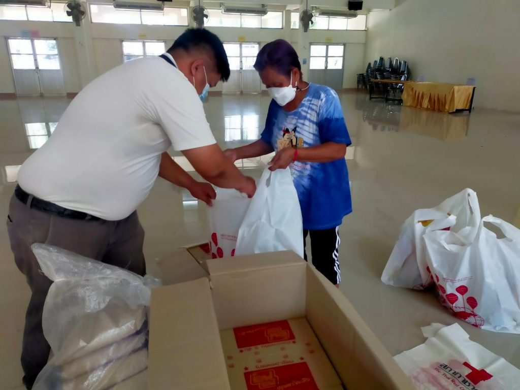 และเจ้าหน้าที่ รับมอบเครื่องอุปโภค บริโภค ชุดธารน้ำใจ กู้ชีวิต ฝ่าวิกฤติ โควิด-19 สภากาชาดไทย เพื่อบรรจุชุดธารน้ำใจ