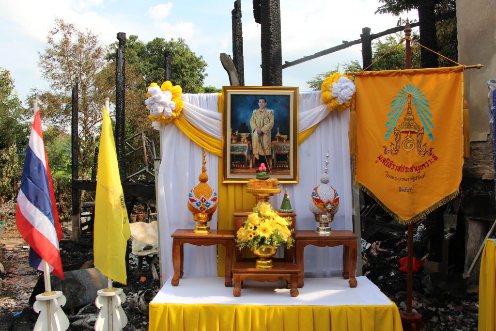 ให้แก่ครอบครัวของ น.ส.บุญตา แก้วเกิด ซึ่งได้ประสบเหตุเพลิงไหม้บ้านเสียหายทั้งหลัง โดยมี นางจิตติวรรณ สิทธิวิรัชธรรม นายกเหล่ากาชาดจังหวัดสิงห์บุรี นางจิราภรณ์ กองเงิน รองนายกเหล่ากาชาดจังหวัดสิงห์บุรี นายอำเภอเมืองสิงห์บุรี นายกองค์การบริหารส่วนตำบลบางมัญ หัวหน้าสำนักงานป้องกันและบรรเทาสาธารณภัยจังหวัดสิงห์บุรี พัฒนาสังคมและความมั่นคงของมนุษย์จังหวัดสิงห์บุรี และเจ้าหน้าที่เหล่ากาชาดจังหวัดสิงห์บุรี ร่วมพิธีดังกล่าว ทั้งนี้ เหล่ากาชาดจังหวัดสิงห์บุรี ร่วมมอบเงินช่วยเหลือ จำนวน 3,000 บาท และเครื่องอุปโภค บริโภค จำนวน 1 ชุด สำนักงานพัฒนาสังคมและความมั่นคงของมนุษย์จังหวัดสิงห์บุรี มอบเงินช่วยเหลือ จำนวน 3,000 บาท และสำนักงานป้องกันและบรรเทาสาธารณภัยจังหวัดสิงห์บุรี มอบเครื่องอุปโภค บริโภค และน้ำดื่ม จำนวน 1 ชุด เพื่อบรรเทาความเดือดร้อนในเบื้องต้นและเพื่อเป็นขวัญกำลังใจในการดำรงชีพ ณ บ้านเลขที่ 90/19หมู่ 1 ตำบลบางมัญ อำเภอเมืองสิงห์บุรี จังหวัดสิงห์บุรี