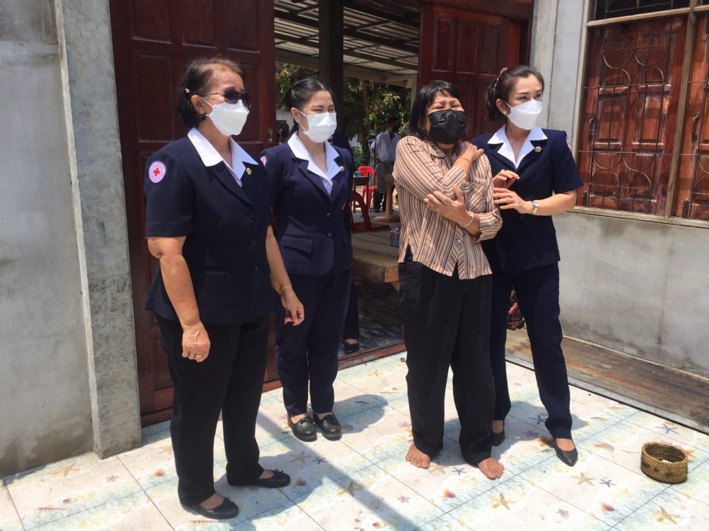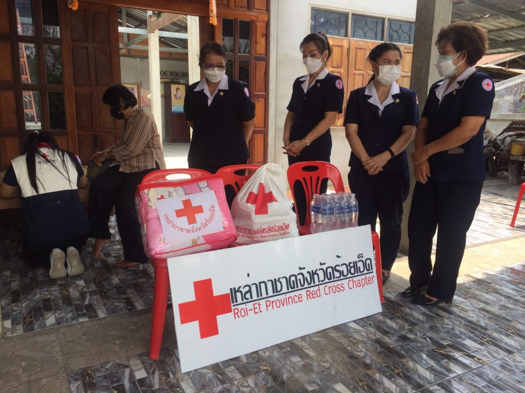 วันพุธที่ 27 เมษายน 2565 นางดนิตา สมจิตต์ นายกเหล่ากาชาดจังหวัดร้อยเอ็ด มอบหมายให้นางพรรณี ดลประสิทธิ์ รองนายกเหล่ากาชาด-จังหวัดร้อยเอ็ด พร้อมด้วยคณะกรรมการเหล่ากาชาดจังหวัดร้อยเอ็ด นายอำเภอ เจ้าหน้าที่ตำรวจ ปลัดอำเภอ และผู้บริหารองค์กรปกครองส่วนท้องถิ่น ลงพื้นที่ออกเยี่ยมให้กำลังใจประชาชนผู้ประสบภัยพิบัติ เนื่องจากเหตุอัคคีภัยในพื้นที่ตำบลหนองทัพไทย อำเภอพนมไพร กรณีนางสาววาริยา มาตรคำจันทร์ บ้านเลขที่ 184 หมู่ที่ 8 ตำบลหนองทัพไทย อำเภอพนมไพร จังหวัดร้อยเอ็ด เสียหายทั้งหลังบรรเทาทุกข์มอบเงินช่วยเหลือ จำนวน 10,000 บาท มอบถุงยังชีพ จำนวน 1 ถุง มอบน้ำดื่ม จำนวน 1 แพ็ค และผ้าห่ม จำนวน 1 ผืน เพื่อบรรเทา-ความเดือดร้อนและสร้างขวัญกำลังใจแก่ผู้ประสบอัคคีภัย
