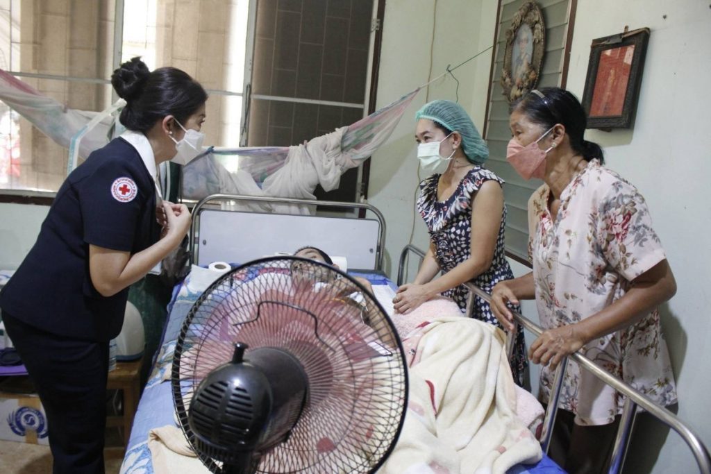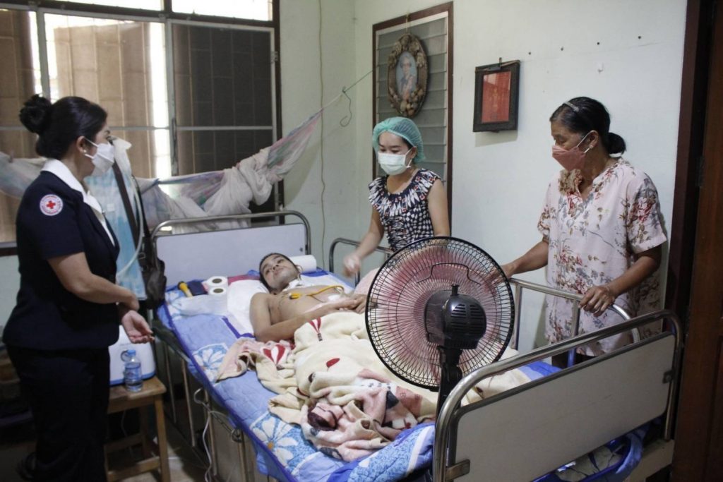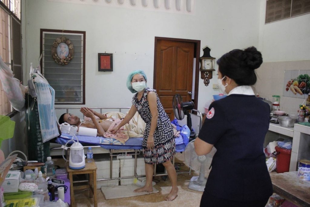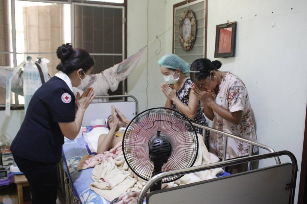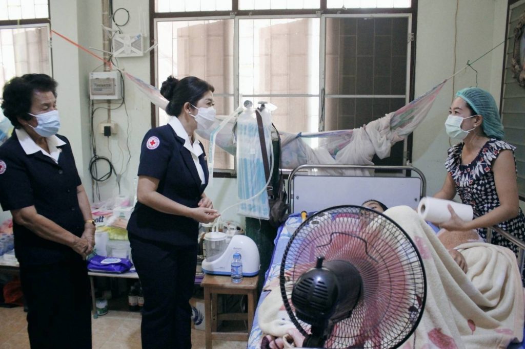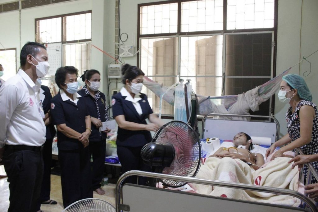 ช่วยเหลือตนเองได้ และจำเป็นต้องได้รับอาหารเฉพาะนมที่มีส่วนผสมของธัญพืชทางสายยางเท่านั้นซึ่งมีราคาค่อนข้างสูงค่าผ้าอ้อมสำเร็จรูปสำหรับผู้ใหญ่ และค่าใช้จ่ายอื่นๆภายในบ้าน ปัจจุบันอาศัยอยู่กับ มารดา บุตรชาย และภรรยาที่ต้องรับผิดชอบค่าใช้จ่ายภายในบ้านทั้งหมดเพียงคนเดีย ทำให้ประสบปัญหาค่าใช้จ่ายไม่เพียงพอต่อการดำรงชีพ พร้อมนี้ เหล่ากาชาดจังหวัดสุราษฎร์ธานีได้มอบเงินช่วยเหลือ จำนวน 5,000 บาทพร้อมด้วยถุงยังชีพ จำนวน 1 ถุง และน้ำดื่ม จำนวน 1 แพ็ค เพื่อเป็นขวัญกำลังใจและบรรเทาทุกข์ในเบื้องต้น ในการนี้