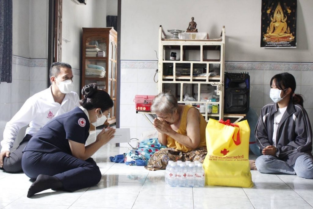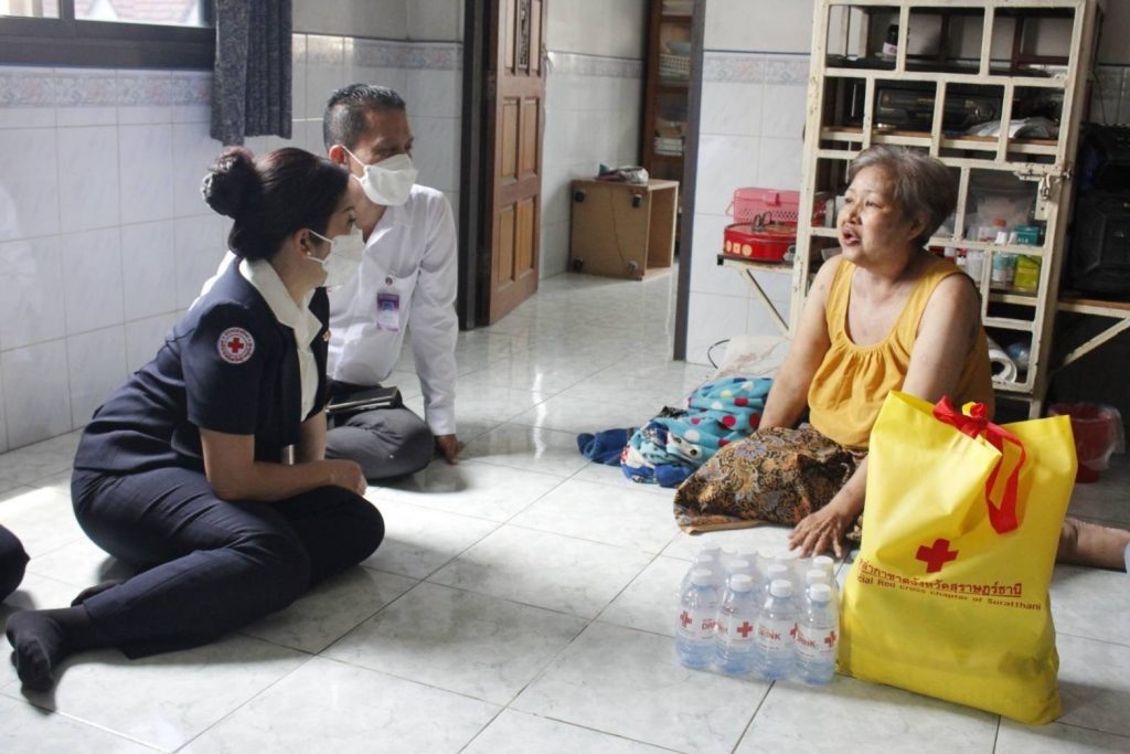 นางศุภลักษณ์ พรมสินธุรองนายกเหล่ากาชาดจังหวัดสุราษฎร์ธานี รองประธานแม่บ้านมหาดไทยจังหวัดสุราษฎร์ธานีกรรมการเหล่ากาชาดจังหวัดสุราษฎร์ธานีสมาชิกเหล่ากาชาดจังหวัดสุราษฎร์ธานีและ สมาชิกชมรมแม่บ้านมหาดไทยจังหวัดสุราษฎร์ธานีลงพื้นที่เยี่ยมผู้ประสบปัญหาทางสังคม ในราย นางดรุณรัตน์ ช่วงทอง อายุ 52 ปี อาศัยอยู่บ้านเช่าเลขที่ 18/7 ถนนราษฎร์บำรุงอำเภอเมือง จังหวัดสุราษฎร์ธานี