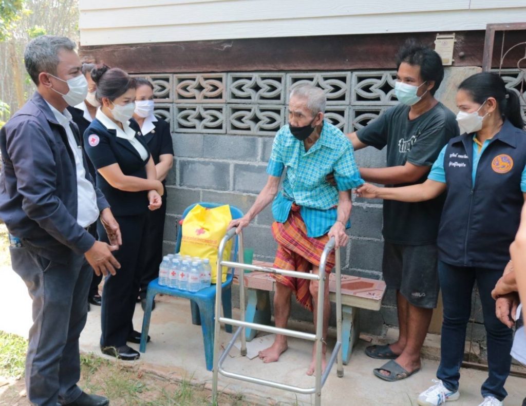 ในการนี้ เหล่ากาชาดจังหวัดสุราษฎร์ธานีได้มอบถุงยังชีพ จำนวน 1 ถุง และน้ำดื่ม จำนวน 1 แพ็คให้แก่นายสมคิดฯ ด้วย