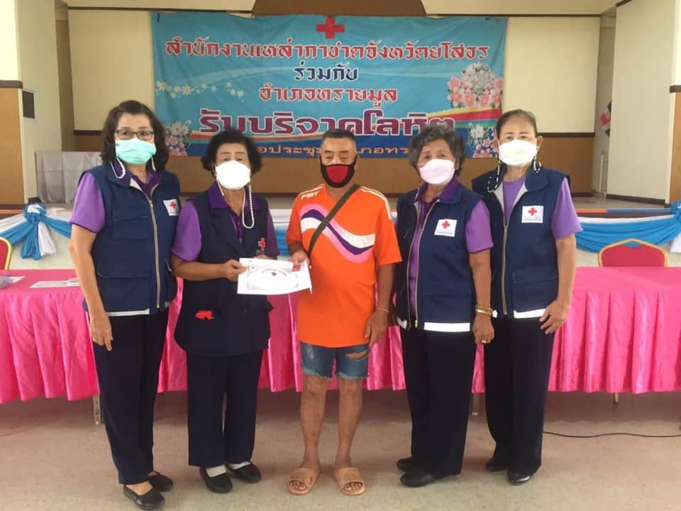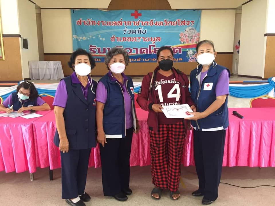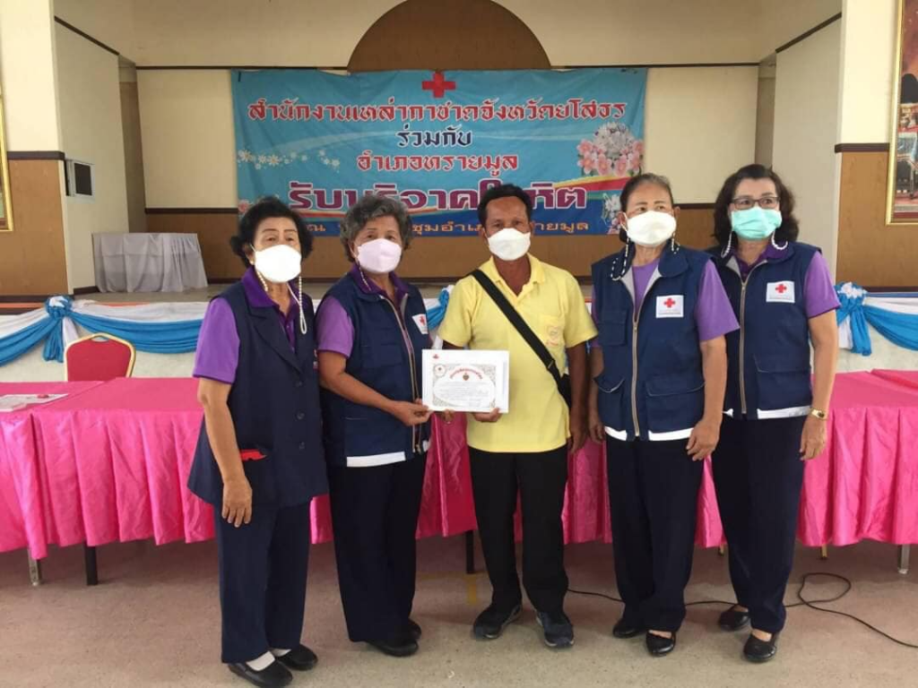 วันที่ 29 เมษายน 2565 นางพัทธานันท์ ยังตรง นายกเหล่ากาชาดจังหวัดยโสธร มอบหมายนางรพีพรรณ แสงศรี รองนายกเหล่ากาชาดจังหวัดยโสธร คณะกรรมการและสมาชิกเหล่ากาชาดจังหวัดยโสธร ออกหน่วยรับบริจาคโลหิตด้วยการทำความดี 50 ความดี 50 ปี จังหวัดยโสธร ที่อำเภอทรายมูล ซึ่งได้รับความร่วมมือจากนางวิชชุฎา เข็มเพชร นายอำเภอทรายมูล เจ้าหน้าที่ผู้เกี่ยวข้อง และผู้นำท้องถิ่น ร่วมกันจัดหาผู้บริจาคโลหิตในครั้งนี้ จำนวน 57 ราย ได้โลหิต 25,650 ซีซี. มีผู้บริจาคดวงตา จำนวน 1 ราย และบริจาคอวัยวะ จำนวน 1 ราย ณ หอประชุมอำเภอทรายมูล อำเภอทรายมูล จังหวัดยโสธร พร้อมทั้งมอบใบประกาศและเข็มที่ระลึกให้กับผู้บริจาคโลหิตที่ครบเกณฑ์ ให้กับผู้บริจาคโลหิตดังกล่าว