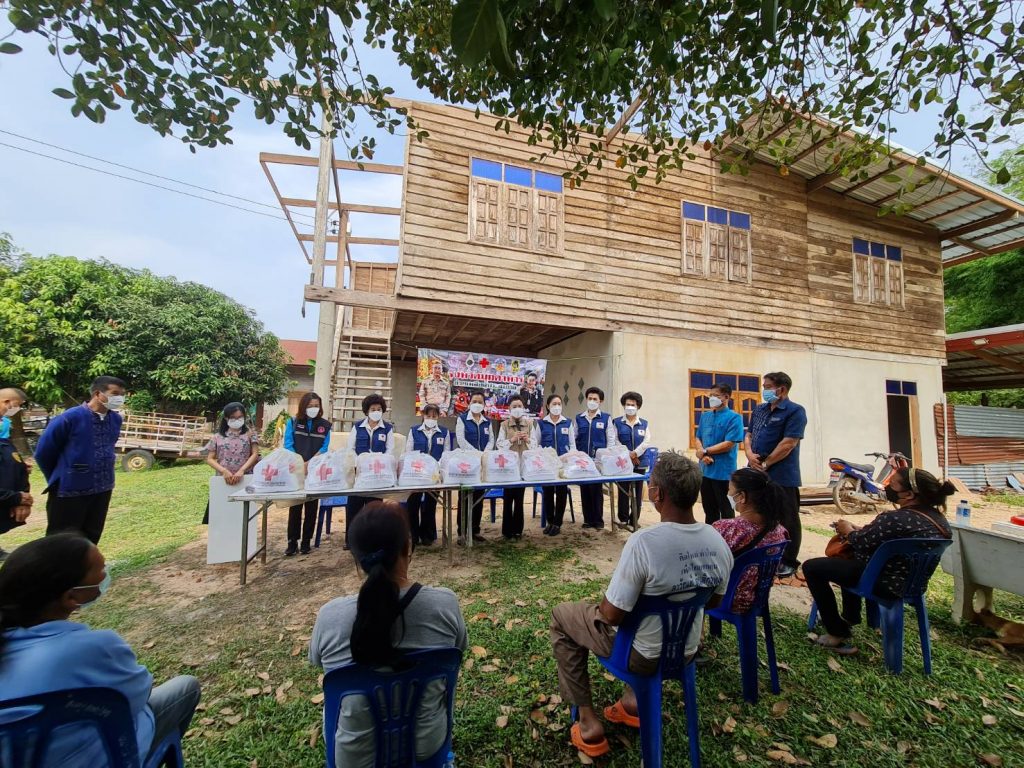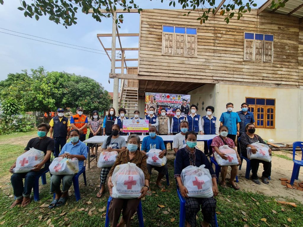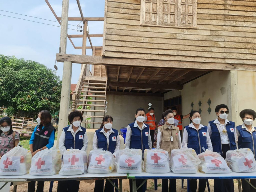 และบรรเทาสาธารณภัยจังหวัดมุกดาหาร ลงพื้นที่ ให้การช่วยเหลือในครั้งนี้ โดยเหล่ากาชาดจังหวัดมุกดาหาร มอบถุงยังชีพ ครอบครัวละ