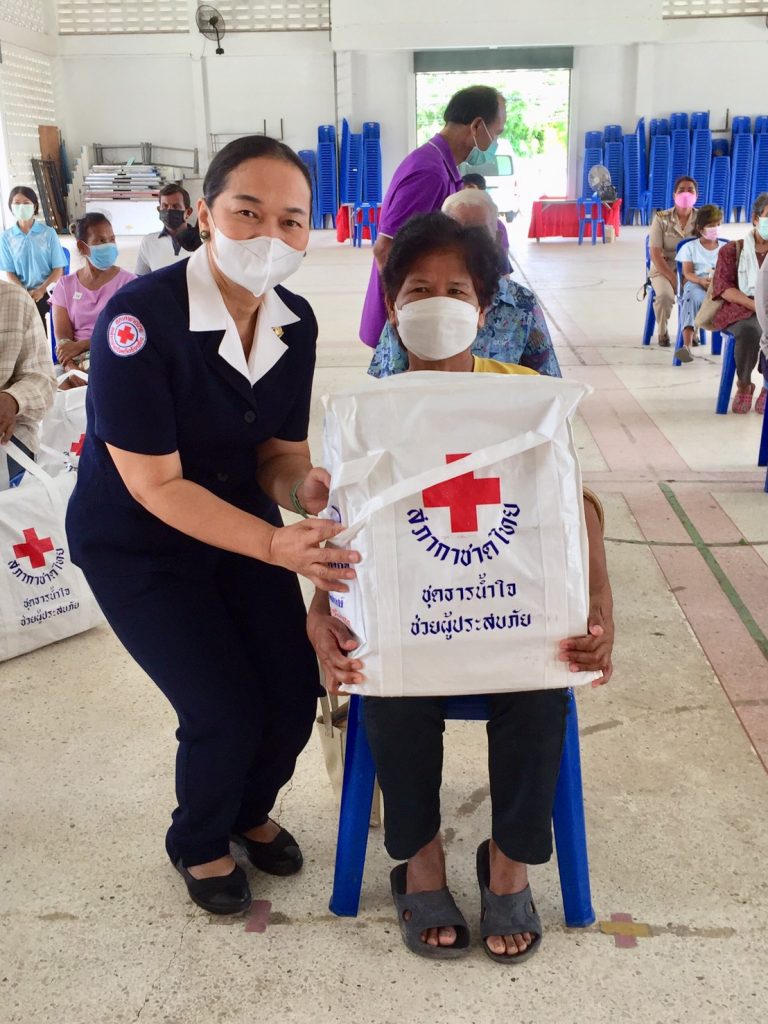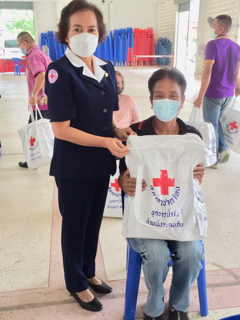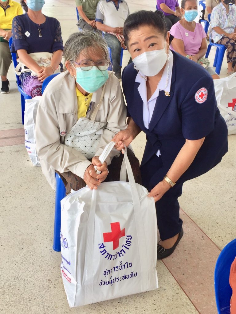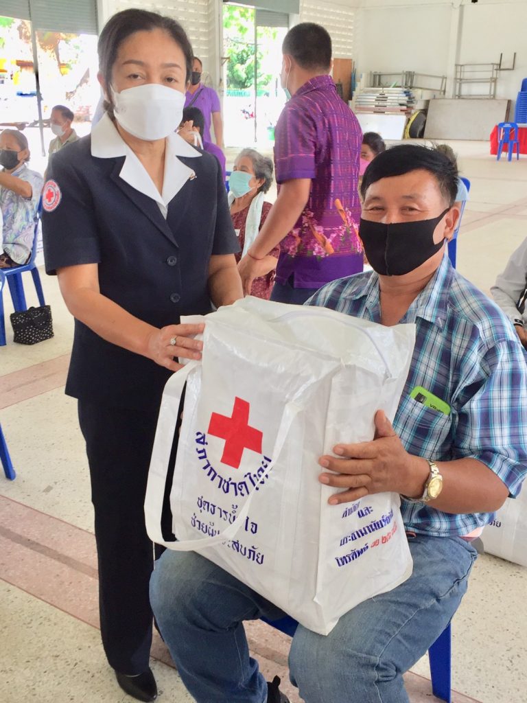 วันที่ นางดนิตา สมจิตต์ นายกเหล่ากาชาดจังหวัดร้อยเอ็ด มอบหมายให้นางจินตนา ชัชวาลวงศ์ รองนายก-เหล่ากาชาดจังหวัดร้อยเอ็ด พร้อมด้วยคณะกรรมการเหล่ากาชาดจังหวัดร้อยเอ็ด ร่วมมอบถุงธารน้ำใจ สภากาชาดไทย ให้กับตัวแทนรับมอบจำนวนทั้งสิ้น 72 ชุด เพื่อมอบให้กับประชาชนที่ประสบวาตภัยในเขตพื้นที่อำเภอโพธิ์ชัย จังหวัดร้อยเอ็ด ซึ่งบ้านเรือนราษฎรได้รับความเสียหาย จำนวน 3 ตำบล 72 ครัวเรือน ณ วัดสว่างโพธิ์ศรี บ้านเหล่ากลาง ตำบลบัวคำ อำเภอโพธิ์ชัย จังหวัดร้อยเอ็ด