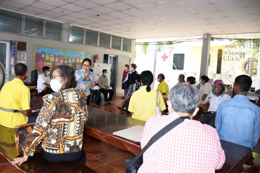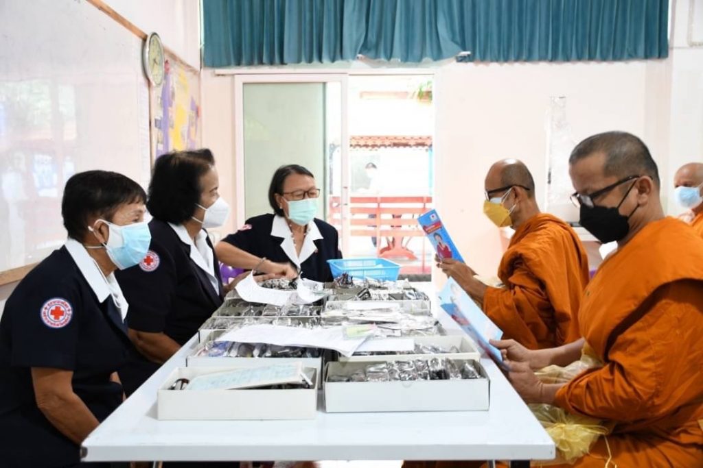 จากสภากาชาดไทย พร้อมทั้งเยี่ยมเยียนให้กำลังใจแก่พระภิกษุ แม่ชี นักบวช ผู้นำศาสนา และประชาชนทั่วไป จำนวน 300 คน ที่เข้ารับ
