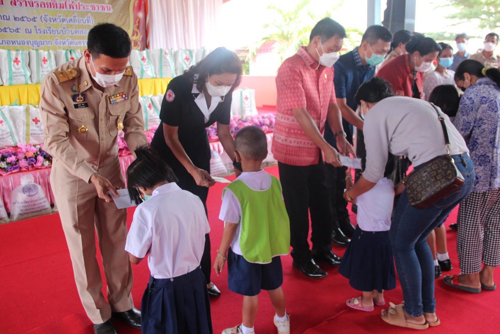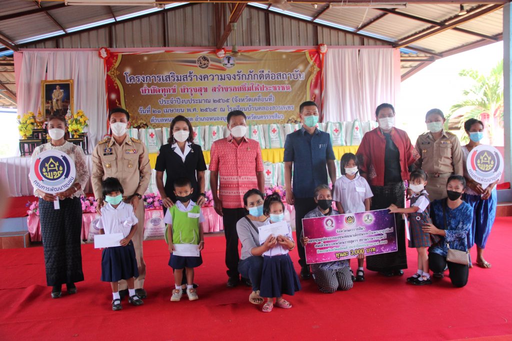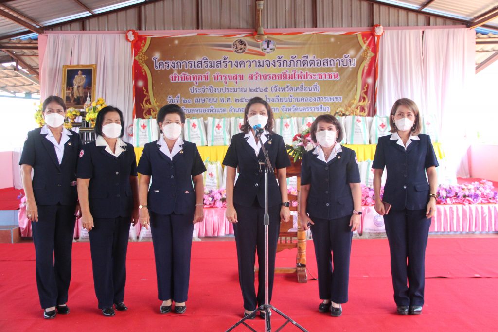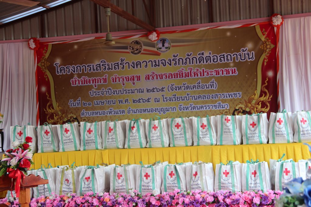 วันที่ 21 เมษายน 2565 นางณัฏฐินีภรณ์ จันทรโณทัย นายกเหล่ากาชาดจังหวัดนครราชสีมา มอบหมายให้ รอ.หญิงจิตชนก กิจวิรัตน์ กรรมการและสมาชิกเหล่ากาชาด จังหวัดนครราชสีมา ร่วมโครงการ “สร้างเสริมความจงรักภักดีดีต่อสถาบัน บำบัดทุกข์ บำรุงสุข ให้ประชาชน” (จังหวัดเคลื่อนที่) ณ ณ โรงเรียนบ้านคลองสารเพชร บ้านคลองสารเพชร หมู่ 7 ตำบลหนองหัวแรต อำเภอหนองบุญมาก โดยมีนายชูศักดิ์ ชุนเกาะ รองผู้ว่าราชการจังหวัดนครราชสีมา เป็นประธานในพิธี