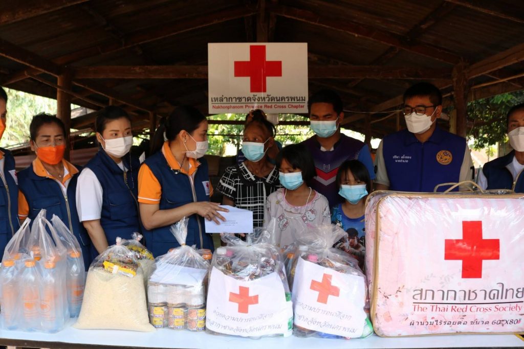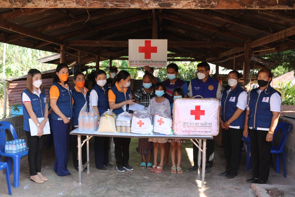 ผู้เดือดร้อนให้มีคุณภาพชีวิตที่ดีขึ้น โดยให้การช่วยเหลือประชาชนให้ครอบคลุมในเขตพื้นที่จังหวัดนครพนม จำนวน 12 อำเภอ นางกาญจนี รุจนเสรี นายกเหล่ากาชาดจังหวัดนครพนม นำคณะกรรมการและสมาชิกเหล่ากาชาดจังหวัดนครพนม บูรณาการร่วมกับอำเภอนาทม ลงพื้นที่เยี่ยมและมอบเงินช่วยเหลือราษฎรผู้ยากไร้ รายที่ 30 ตามกิจกรรม ” วันกาชาด บรรเทาทุกข์ บำรุงสุข ประชา ” ปีงบประมาณ พ.ศ.2565 แก่ นางวันเพ็ญ ไชยพล อายุ 65 ปี บ้านเลขที่ 197 หมู่ที่ 12 ตำบลหนองซน อำเภอนาทม จังหวัดนครพนม ต้องดูแลหลาน