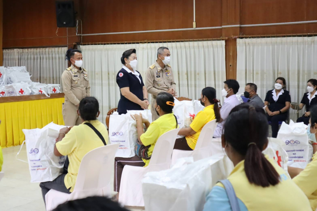 เหล่ากาชาดจังหวัดสุโขทัยและหัวหน้าส่วนราชการ ร่วมพิธีมอบถุงธารน้ำใจ จากสถานีกาชาดเทพรัตน์ (สถานีกาชาดที่ 13 จังหวัดตาก)