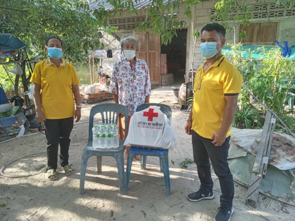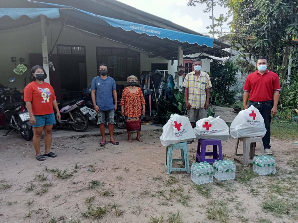 สภากาชาดไทย ให้กับผู้กักตัวเนื่องจากสัมผัสใกล้ชิดผู้ติดเชื้อโควิด 19 ในพื้นที่ตำบลนาปะขอและตำบลโคกสัก จำนวน 30 ชุด