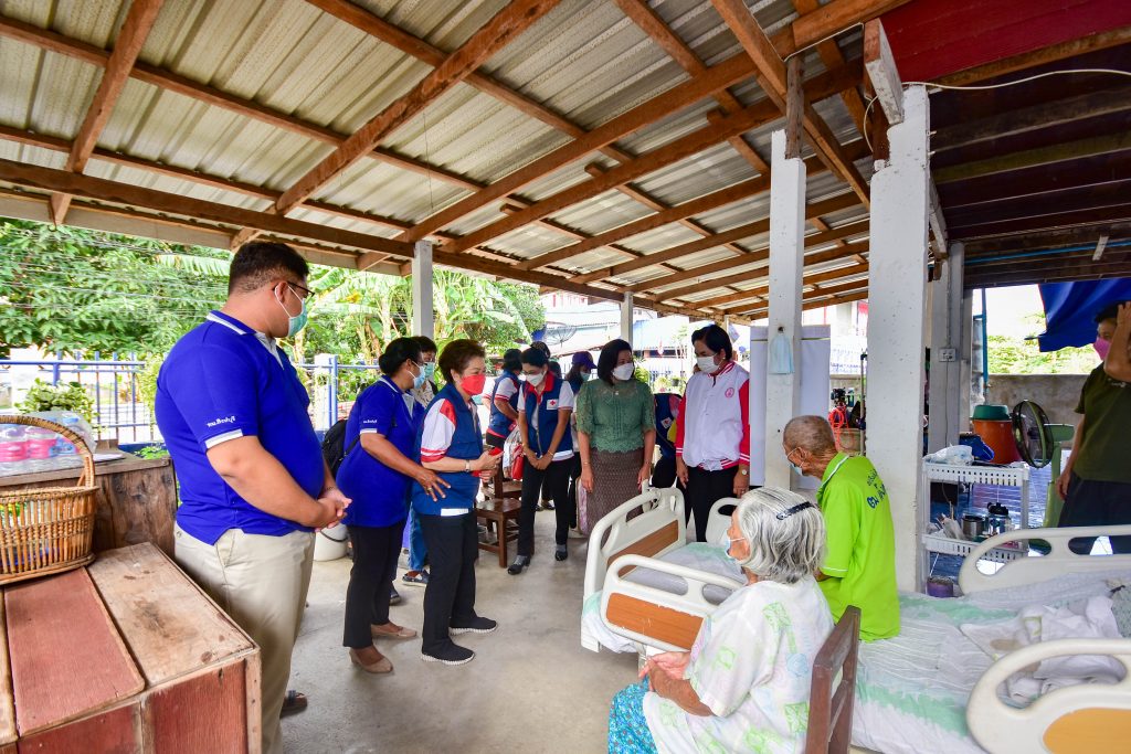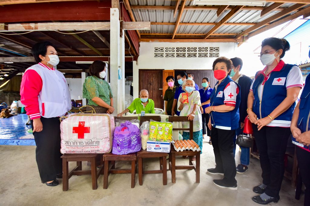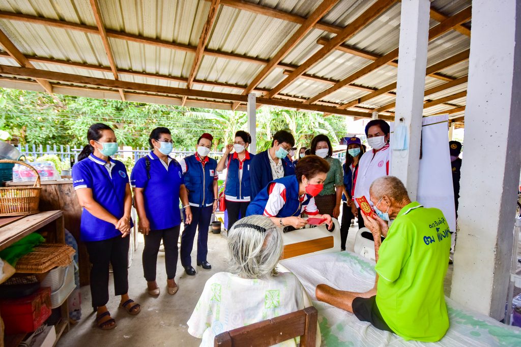วันที่ 2 กุมภาพันธ์ 2565 นางจิตติวรรณ สิทธิวิรัชธรรม นายกเหล่ากาชาดจังหวัดสิงห์บุรี พร้อมด้วยกรรมการเหล่ากาชาดจังหวัดสิงห์บุรี พัฒนาสังคมและความมั่นคงของมนุษย์จังหวัดสิงห์บุรี อสม. เจ้าหน้าที่เหล่ากาชาดจังหวัดสิงห์บุรี และสมาชิกแม่บ้านมหาดไทยจังหวัดสิงห์บุรี ลงพื้นที่ตรวจเยี่ยมให้กำลังใจผู้สูงอายุ รายนายกิมเซ้ง เกลี้ยวทองสกุล อายุ 96 ปี และนางวิไล เกลี้ยวทองสกุล อายุ 86 ปี พร้อมมอบเครื่องอุปโภค-บริโภค ผ้านวม และมุ้ง จำนวน 1 ชุด ณ บ้านเลขที่ 185/20 หมู่ที่ 7 ต.บางมัญ อ.เมือง จ.สิงห์บุรี ทั้งนี้ สำนักงานพัฒนาสังคมและความมั่นคงของมนุษย์จังหวัดสิงห์บุรี ร่วมมอบ นม น้ำ และขนม จำนวน 1 ชุด