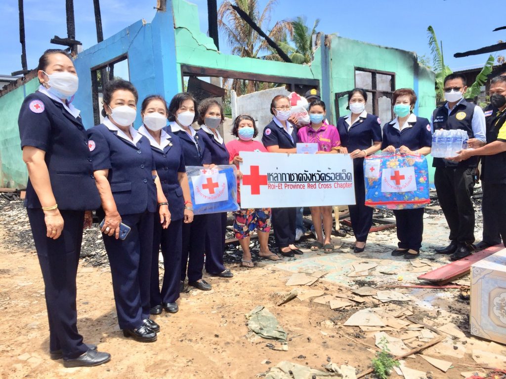 วันที่ 5 พฤษภาคม 2565 นางดนิตา สมจิตต์ นายกเหล่ากาชาดจังหวัดร้อยเอ็ด มอบหมายให้นางทัชชญา พลเยี่ยม และนางอัจฉรา ราชบุรี รองนายกเหล่ากาชาดจังหวัดร้อยเอ็ด พร้อมด้วยคณะกรรมการเหล่ากาชาดจังหวัดร้อยเอ็ด ที่ปรึกษาเหล่ากาชาดจังหวัดร้อยเอ็ด และสมาชิกเหล่ากาชาดจังหวัดร้อยเอ็ด นายอำเภอ เจ้าหน้าที่ตำรวจ ปลัดอำเภอ และผู้บริหารองค์กรปกครองส่วนท้องถิ่น ลงพื้นที่ออกเยี่ยมให้กำลังใจประชาชนผู้ประสบภัยพิบัติ เนื่องจากเหตุอัคคีภัยในพื้นที่ตำบลนาเลิง อำเภอเสลภูมิ กรณีนางสมบูรณ์ เทพราชบ้านเลขที่ 24 หมู่ที่ 5 ตำบลนาเลิง อำเภอเสลภูมิ จังหวัดร้อยเอ็ด เสียหายทั้งหลังบรรเทาทุกข์มอบเงินช่วยเหลือ จำนวน 10,000 บาท มอบถุงยังชีพ จำนวน 1 ถุง มอบน้ำดื่ม จำนวน 1 แพ็ค และผ้าห่ม จำนวน 1 ผืน เพื่อบรรเทาความเดือดร้อนและสร้างขวัญกำลังใจแก่ผู้ประสบอัคคีภัย